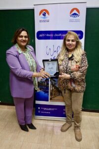 وتم تكريم الإعلامية الكبيرة سهير شلبي، حيث قامت الأستاذة الدكتورة دينا فاروق أبو زيد، عميدة الكلية، بتسليمها درع الكلية تقديرا لمسيرتها الإعلامية المتميزة.