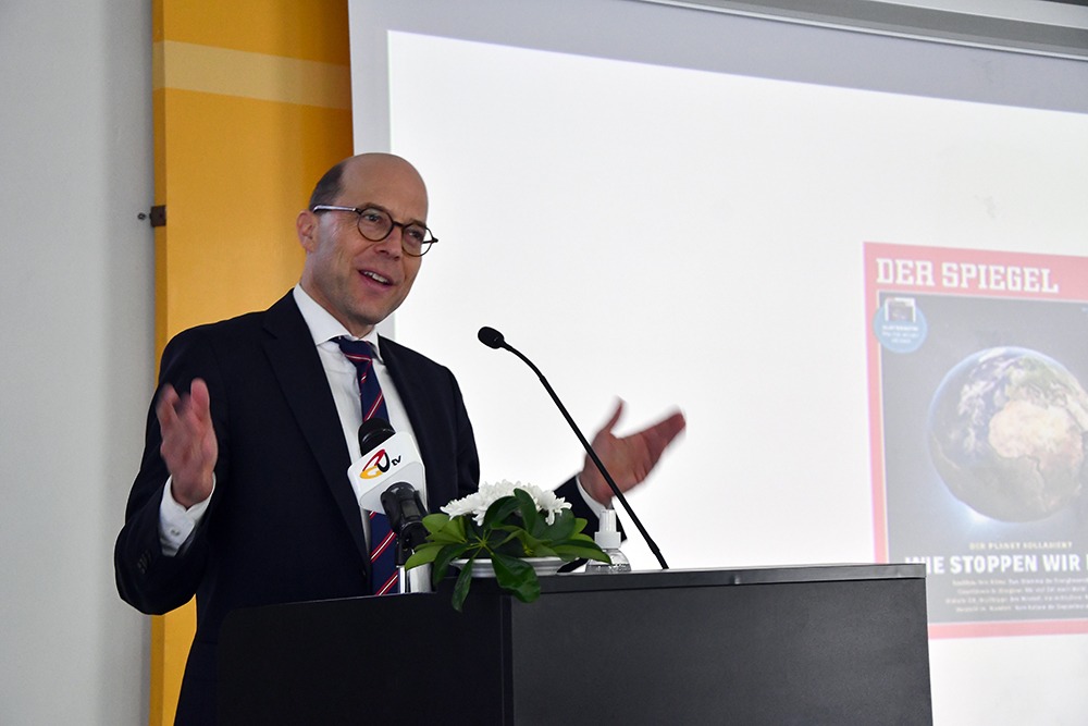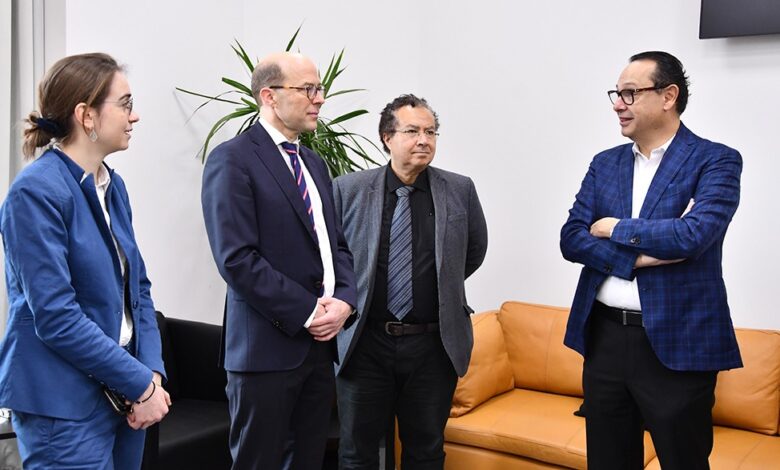 استقبل الدكتور أشرف منصور رئيس مجلس امناء الجامعة الالمانية بالقاهرة و الدكتور ياسر حجازي رئيس الجامعة الدكتور مارك فيليب فيلر ، نائب رئيس جامعة هايدلبرج للشئون الدولية و مدير معهد القانون المقارن وتعارض القوانين وقانون الأعمال الدولي بهايدلبرج وذلك في ندوة نقاشية بمقر الجامعة الألمانية بعنوان ” التقاضي بشأن تغير المناخ ضد الشركات- دراسة مقارنة ” .