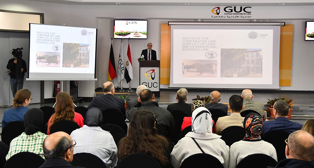 يذكر أن الجامعة الالمانية بالقاهرة على مدار أكثر من عشرين عاماً ،تتناول الموضوعات الهامة التي تُطرح على الساحات المحلية والدولية، وتعقد الندوات وتدعو لها الشخصيات التي تتسم بالتنوع فى طرح الرؤى والأفكار وتبادل الآراء والذى يقابله متابعة من قبل قاعدة عريضة من الجمهور على المستوى المحلي والإقليمي والدولي ،علماً بأن كلية الحقوق و الدراسات القانونية بالجامعة قامت بتخريج اول دفعة لسوق العمل المحلي و العالمي في شهر اكتوبر الماضي 2022 ، علاوة على وجود مجلس استشاري للكلية يضم قامات قانونية عالمية من مصر وألمانيا ، جاء الهدف من انشاءه الإستفاده من خبرات أعضاء مجلس إدارته بما يتحقق معه اكتساب خريج الكلية المهارات العقلية المتعددة منها التفكير التحليلي العميق نتيجه لتدريبهم على ادارة العديد من القضايا المطروحة .