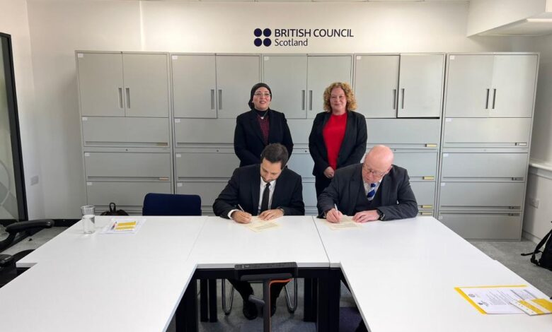 أكبر تعاون مصري إنجليزي في مجال التعليم العالي .. جامعة سيناء توقع اتفاقيات مع جامعتي إدنبرة نابيير وكوين مارجريت
