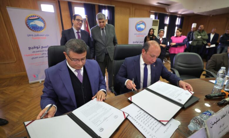 وقع الدكتور محمد سليمان، رئيس لجنة الشئون الاقتصادية بمجلس النواب، أمين عام حزب مستقبل وطن بمحافظة القاهرة، والدكتور محمد سامي عبد الصادق، رئيس جامعة القاهرة، بروتوكول تعاون مع مستشفى أبو الريش المنيرة، أحد مستشفيات قصر العيني كلية الطب جامعة القاهرة.