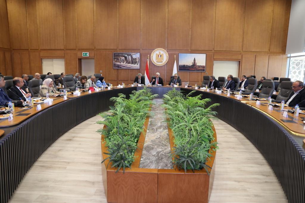 ومن ناحية أخرى، عقد الوزير اجتماعًا مع هيئة الشراء الموحد، بحضور اللواء بهاء زيدان رئيس الهيئة، واللواء هيثم زكي مساعد الوزير للمشروعات القومية.