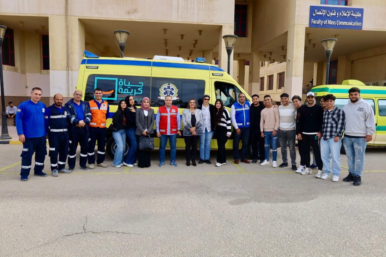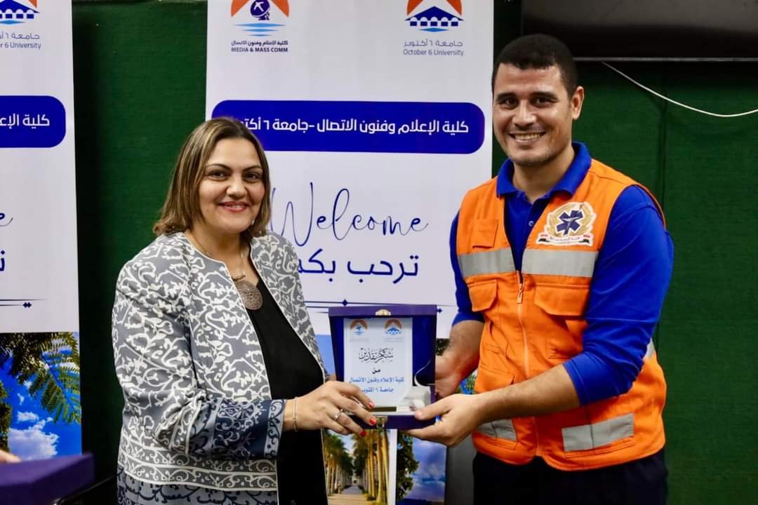 نظمت كلية الاعلام جامعة ٦ اكتوبر ندوة وورشة عمل عن الاسعافات الاولية بالتعاون مع هيئة الإسعاف المصرية تحت رعاية .د ممدوح مصطفى غراب رئيس جامعة ٦ أكتوبر و.دهشام تمراز نائب رئيس الجامعة لشئون البيئة وخدمة المجتمع وتحت قيادة .د دينا فاروق أبوزيد عميد كلية الإعلام وفنون الاتصال بالجامعة .شارك فى الندوة الدكتور عمرو رشيد .وتم تنظيم ورشة عمل عن الإسعافات الأولية التى يمكن الاستعانة بها فى حالة حدوث أى طوارئ أو حوادث لإنقاذ حياة الأفراد حولنا، وقدم الورشة الدكتور محمد حسين مدير إسعاف ٦ أكتوبر ، ومؤنس أبوسريع مدير إدارة الإعلام بهيئة الإسعاف المصرية وأ.أحمد سامى مشرف قطاع ٦ إكتوبر .