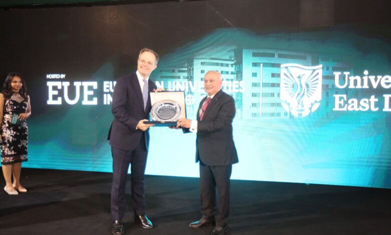 أعلنت الجامعات الاوروبية فى مصر EUE ومقرها العاصمة الادارية عن إنضمام فرع جامعة شرق لندن (UEL) إحدى الجامعات البريطانية العريقة الى فروعها “جامعة لندن UoL)) و جامعة وسط لانكشير (UCLan) ، وذلك خلال الاحتفال الذى نظمته الجامعات الاوروبية بحضور الاستاذ الدكتور محمود هاشم عبدالقادر المؤسس ورئيس مجلس الامناء وGareth Bailey والسفير البريطاني في مصر، والمدير العام للمركز الثقافي البريطاني في مصر Mark Howard ، وعدد من السفراء ، والمستشاريين الثقافيين.