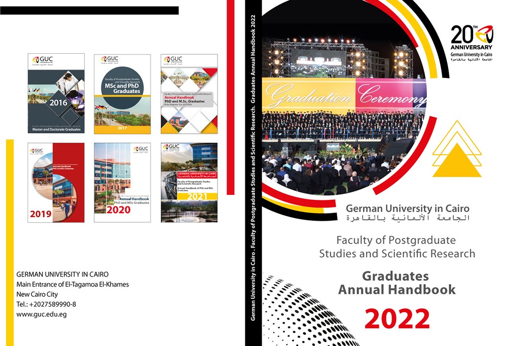 تجدر الأشارة إلى ان كلية الدراسات العليا بالجامعة الالمانية قد انتهت من اعداد كتابها السنوى لعام 2022 عن مخرجات الدراسات العليا من الكوادر العلمية و البحثية الحاصلين على درجات الدكتوراة – الماجستير- الدبلومات بكليات الجامعة الالمانية بالقاهرة و يمكن الاطلاع عليه على الرابط التالي: