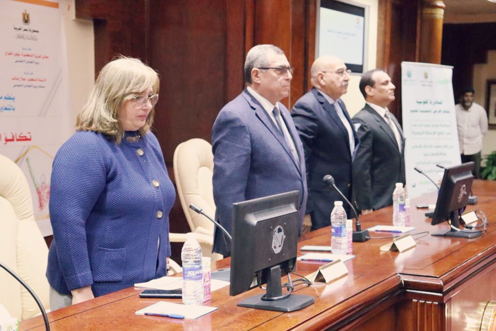 في بدايه الاحتفال تقدم د. جمال سامي رئيس الجامعه بالشكر والتقدير الي السيده نفين القباج وزيره التضامن الاجتماعي علي التعاون المثمر والبناء بين الوزاره والجامعه مشيراً إلي اسهامات وزارة التضامن الاجتماعي وما تبذله الوزارة من مجهودات كبيره في خدمة المجتمع.