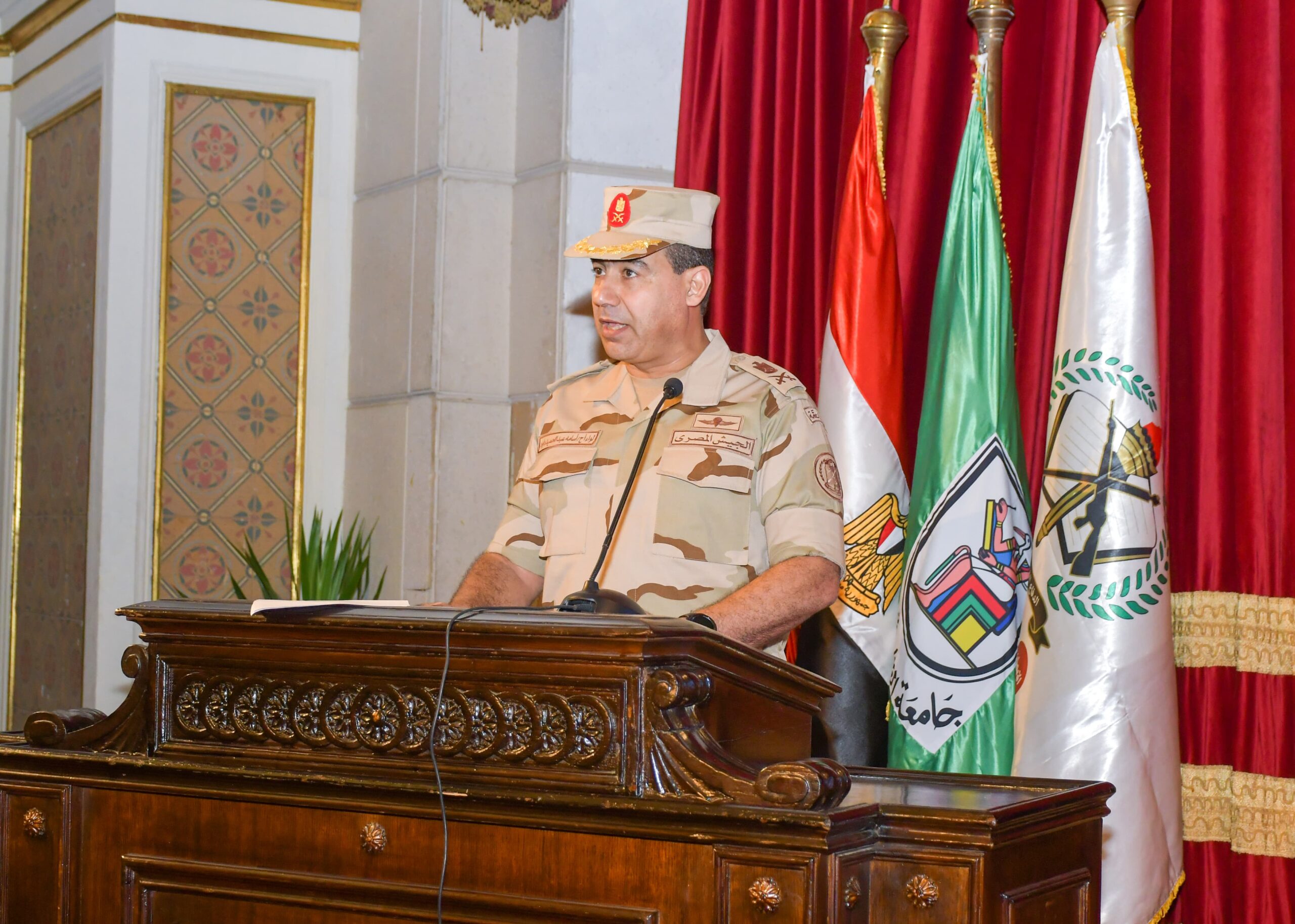 واستعرض قائد قوات الدفاع الشعبي والعسكري اهم التحديات والمخاطر التى تهدد المنطقة والعالم، مؤكدا ان المواجهة تستلزم منا ان نكون قادرين على مواجهتها، والتصدى لها، بوحدة إرادتنا، وصلابة شعبنا، وعزيمة وقدرة قواتنا المسلحة، وكافة أجهزة الدولة ومؤسساتها كل فى ميدانه، لنحفظ لمصرنا عزتها وكرامتها، وسيادتها واستقرارها.