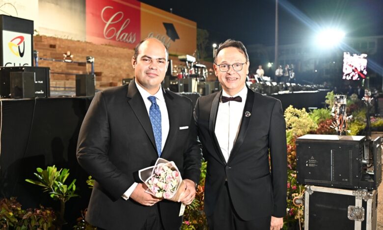 وفى هذه المناسبة، التي تتقلدّ فيها أول شخصية مصرية عربية تلك العضوية لا يسع أسرة الجامعة الألمانية بالقاهرة إلا تهنئته بهذا المنصب الرفيع الذى تقلده ، متمنين له دوام النجاح و التفوق في القيام بالمهام الجديدة المُسندة إليه.