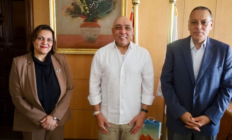 والأستاذ الدكتور هشام تمراز نائب رئيس الجامعة لشئون خدمة المجتمع وتنمية البيئة ،الأستاذة الدكتورة إيمان العزيزي نائب رئيس الجامعة لشئون التعليم والطلاب والأستاذة الدكتورة دينا فاروق ابو زيد عميدة الكلية
