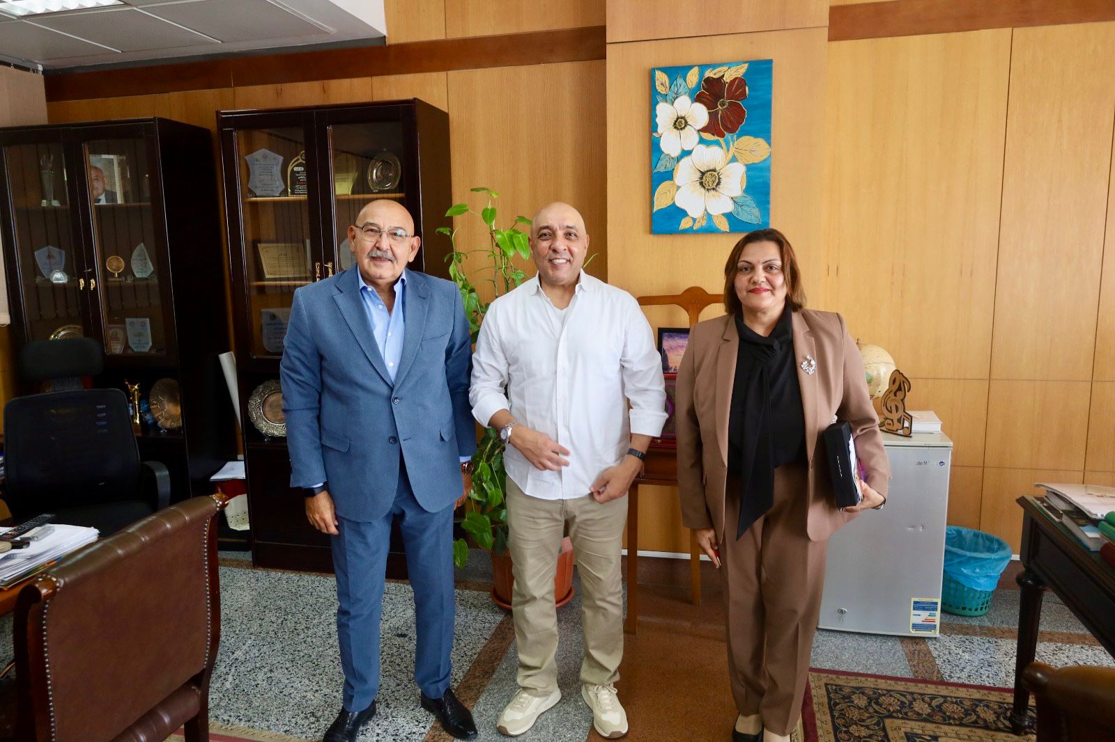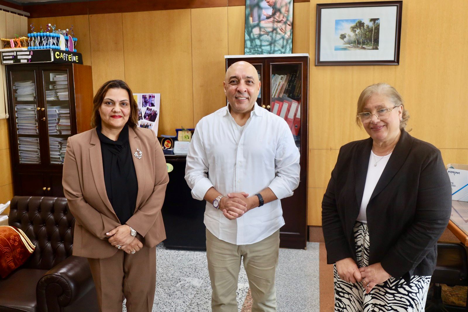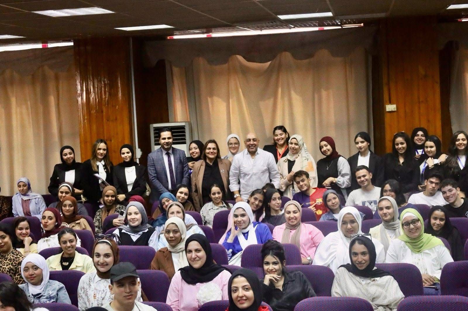 والأستاذ الدكتور هشام تمراز نائب رئيس الجامعة لشئون خدمة المجتمع وتنمية البيئة ،الأستاذة الدكتورة إيمان العزيزي نائب رئيس الجامعة لشئون التعليم والطلاب والأستاذة الدكتورة دينا فاروق ابو زيد عميدة الكلية