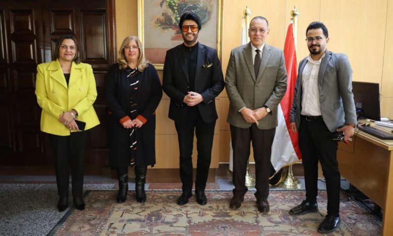 والتقى الفنان سامح يسري مع الدكتور ممدوح غراب رئيس الجامعة و.د إيمان العزيزي نائب رئيس الجامعة لشئون التعليم والطلاب مرحبين به داخل جامعة ٦ أكتوبر .