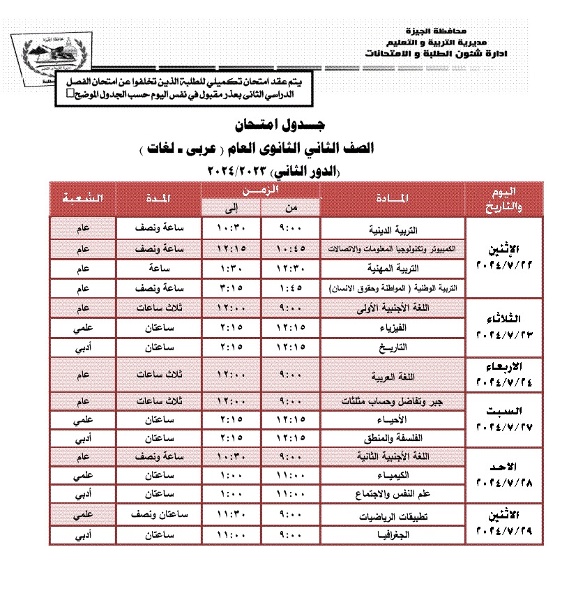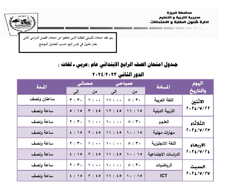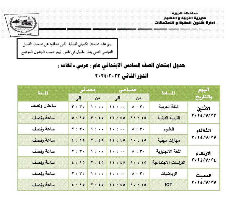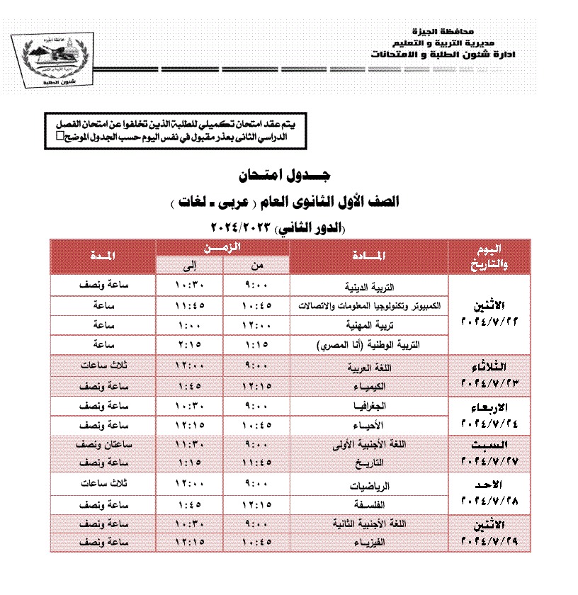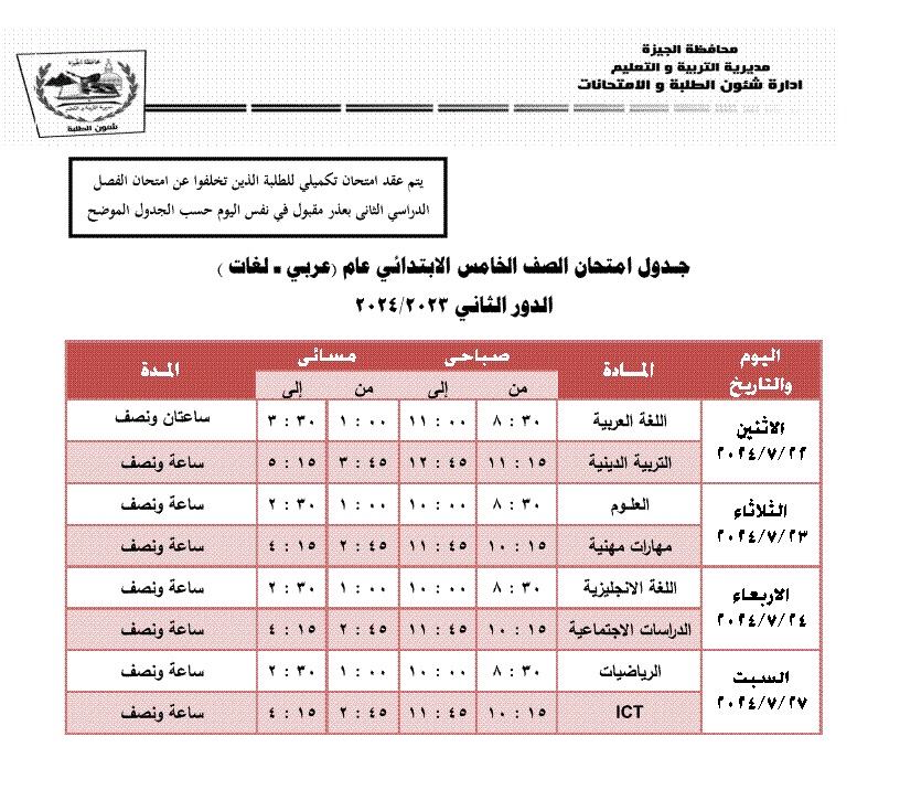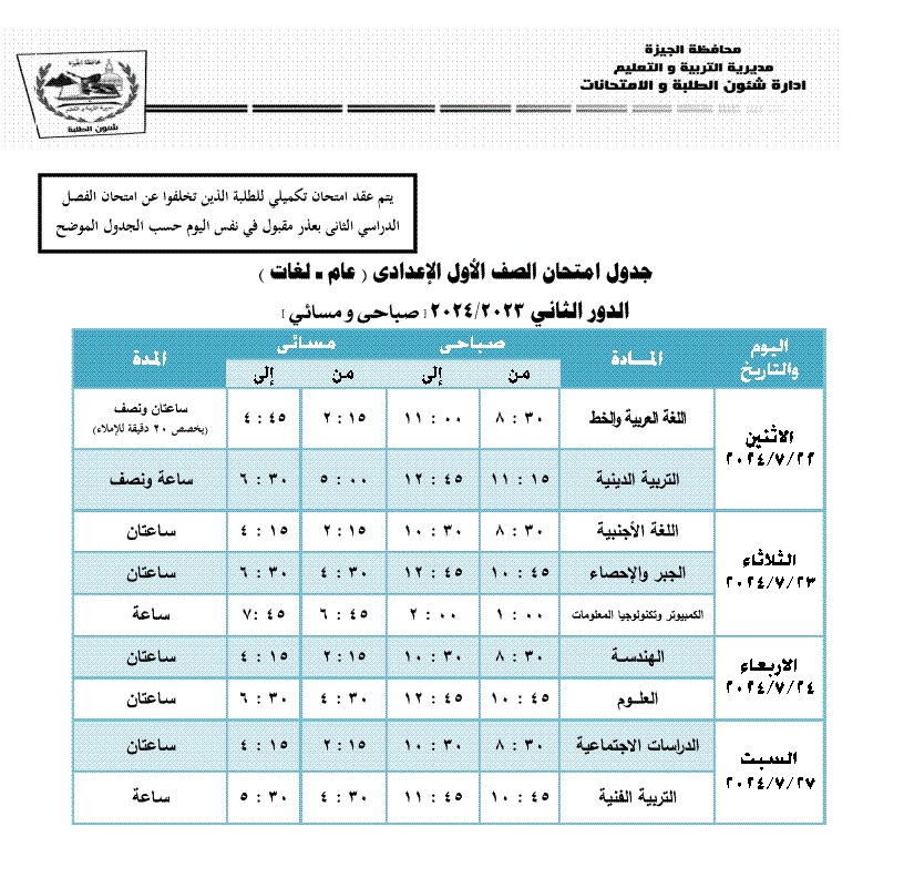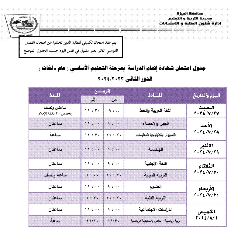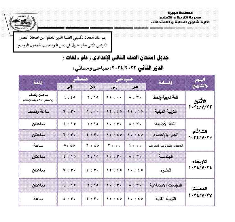اعلان جداول امتحانات الدور الثاني بتعليم الجيزة