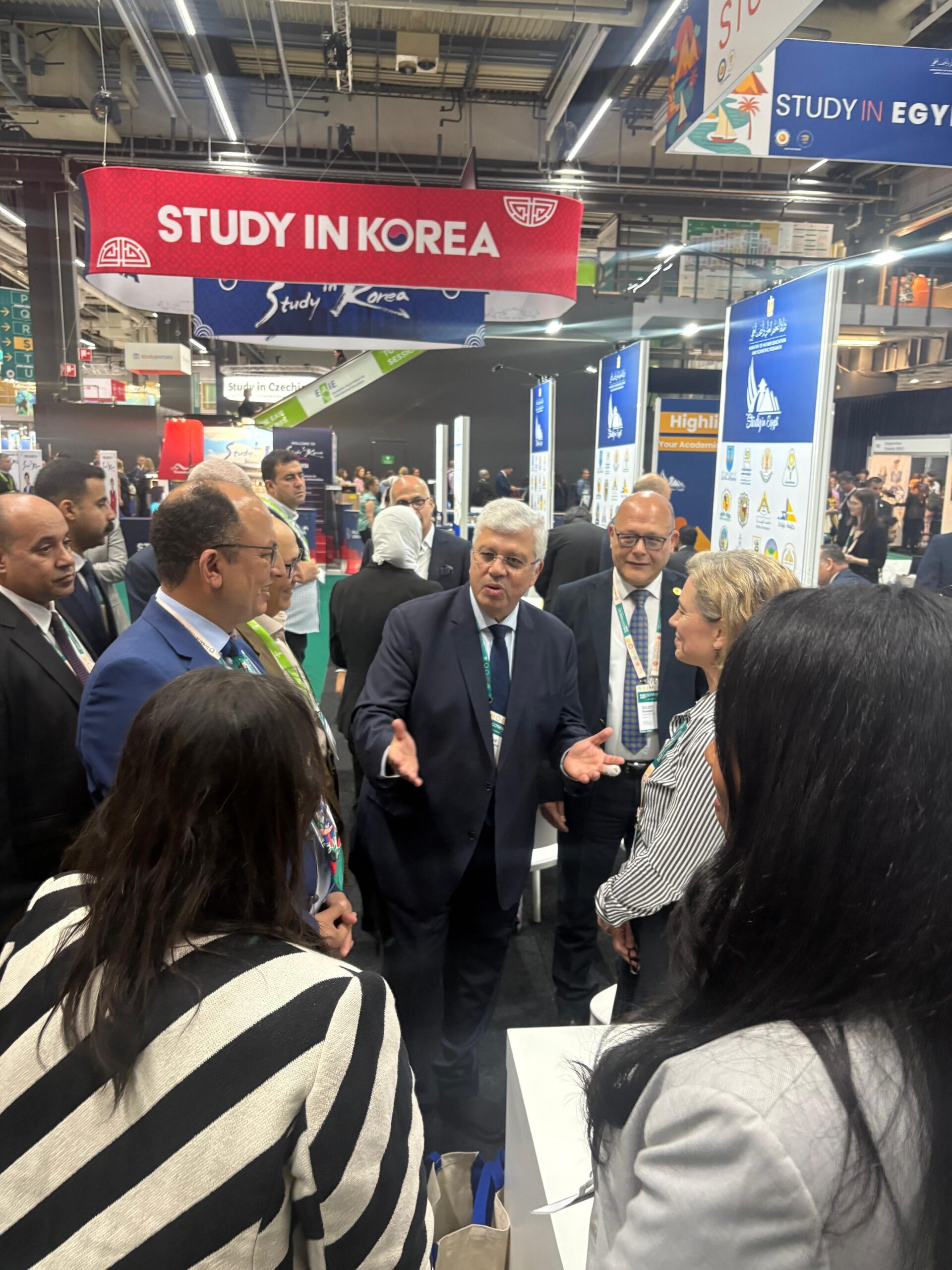 وحظي الجناح المصري بموقع استراتيجي متميز داخل أروقة المعرض، بجوار أجنحة دول رائدة في مجال التعليم العالي مثل كوريا الجنوبية والصين، وهو ما يعكس المكانة المتقدمة لمصر على خريطة التعليم العالمي، ويسهل عملية التفاعل وبناء الشراكات مع مختلف المؤسسات التعليمية بمختلف دول العالم.