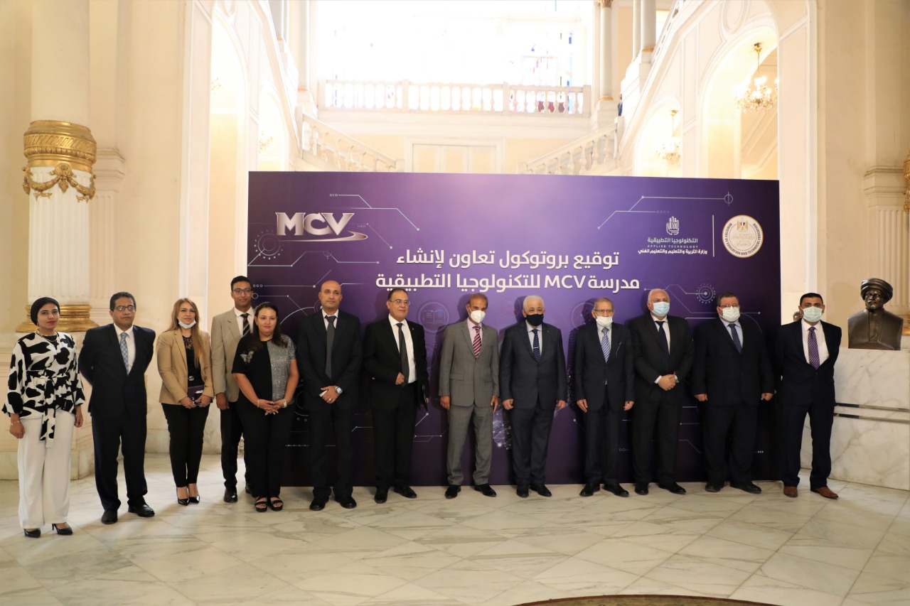وقع البروتوكول الدكتور محمد مجاهد نائب وزير التربية والتعليم لشئون التعليم الفني، والمهندس عاطف طلعت – مدير عام المدارس بمجموعة شركات MCV، بحضورالدكتور محمد موسى عمارة، رئيس قطاع التعليم الفني، والدكتورة شيرين حمدي مستشار الوزير للتطوير الإداري والمشرف على الإدارة المركزية لشئون مكتب الوزير، والدكتورعمرو بصيلة، رئيس الإدارة المركزية لتطوير التعليم الفني، ومدير وحدة تشغيل وإدارة مدارس التكنولوجيا التطبيقية، والمهندس كريم غبوررئيس مجلس إدراة مجموعة شركات MCV، والمهندس أمين كريم غبور مدير الإنتاج بمصانع مجموعة شركات MCV.