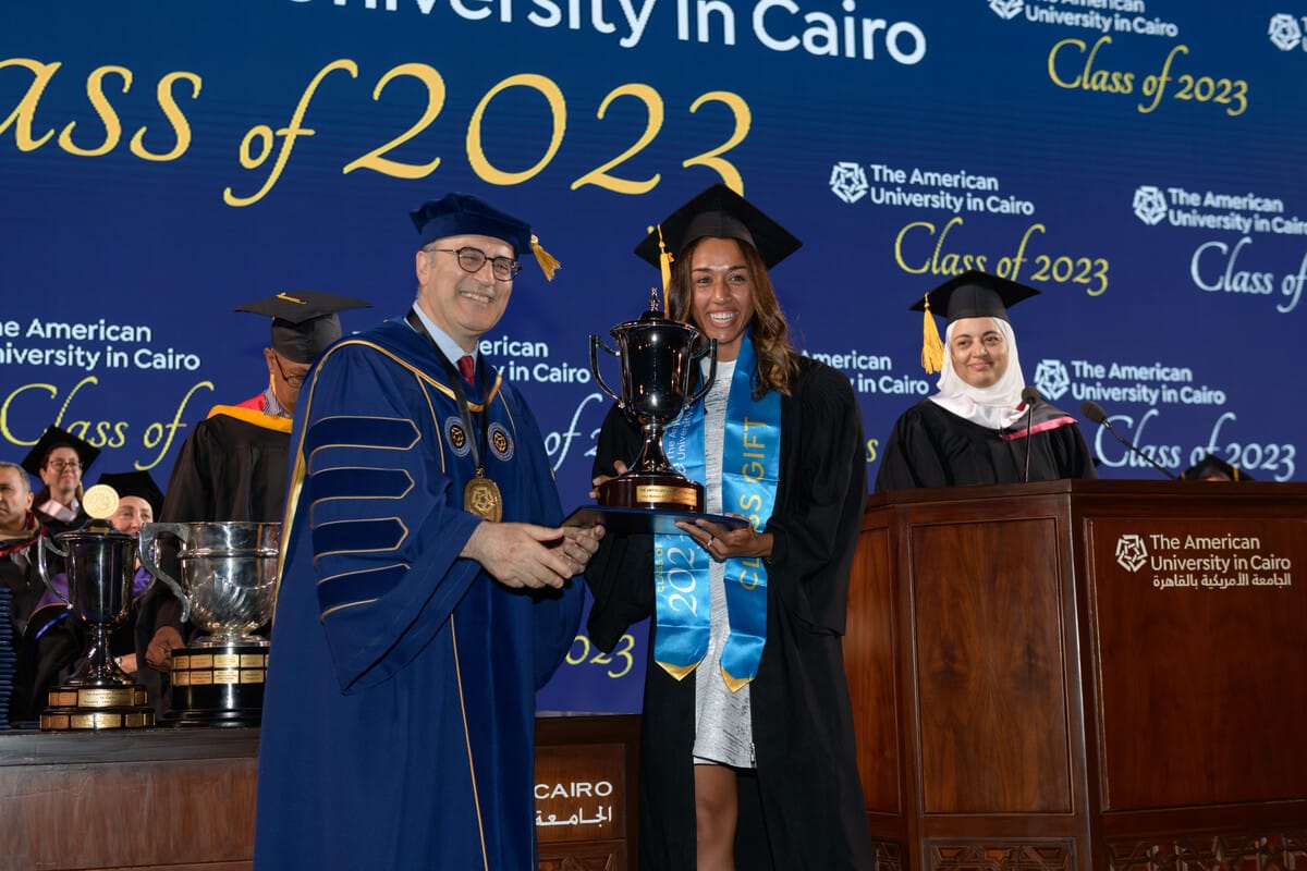 أقامت الجامعة الأمريكية بالقاهرة حفل تخرج دفعات جديدة للبكالوريوس والدراسات العليا حيث تم منح شهادة البكالوريوس لـ 653 طالب، وتم منح مرتبة الشرف ل 125 طالب، ومرتبة الشرف الأعلى ل 140 طالب ومرتبة الشرف العليا ل 129 طالب، وحصل 122 طالب على درجة الماجستير في حفل تخرج الدراسات العليا. كما احتفلت الجامعة أيضا بتخريج 41 من الطلاب الدوليين من العديد من الدول ومنها كندا، والولايات المتحدة الأمريكية، وجنوب أفريقيا، والبحرين، ورواندا، وباكستان، وسوريا، واليمن والمملكة المتحدة وغيرها. كما