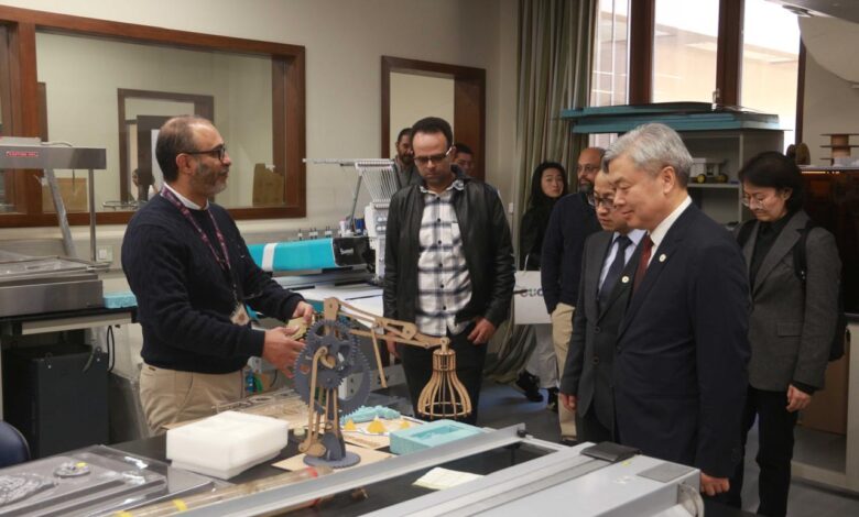 شارك أعضاء الوفد، خلال وجودهم في الحرم الجامعي، في جولة موسعة داخل معامل كلية العلوم والهندسة، شملت معمل الواقع الافتراضي، ومعامل علوم الحاسب الآلي، ومعمل الروبوتات، ومصنع الطوخي التعليمي للابتكار وريادة الأعمال حيث أتاحت لهم الاطلاع عن قرب على التطبيق العملي للإمكانات التقنية بالجامعة الأمريكية بالقاهرة، وكيفية تفاعل الطلاب مع أحدث التقنيات.