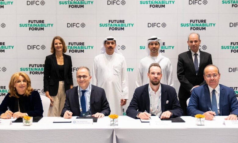 استناداً إلى سجلها الحافل وخبرتها الواسعة في مجال الاستدامة والتعليم المهني ، وقعت الجامعة الأمريكية بالقاهرة مذكرة تفاهم مع وزارة التغير المناخي والبيئة بدولة الإمارات العربية المتحدة، وأكاديمية مركز دبي المالي العالمي، ومركز القيادات الجامعية لإطلاق برنامج الدبلوم التنفيذي في الاستدامة، وهو أول برنامج تدريبي تطلقه الجامعة الأمريكية بالقاهرة في دبي لتدريب 200 موظف حكومي في الإمارات. يسعى هذا البرنامج متعدد التخصصات إلى تمكين أربع دفعات من العاملين من اكتساب المعرفة والمهارات والفكر المطلوب لقيادة التغير المستدام في العالم بتحدياته الراهنة. يأتي إطلاق هذا البرنامج لتحقيق الموائمة الاستراتيجية مع الرؤية الإماراتية لزيادة وعي الشباب الإماراتي بالتحديات العالمية للاستدامة والذي يتزامن مع استعداد دولة الإمارات العربية المتحدة لاستضافة الدورة الثامنة والعشرين من مؤتمر الأمم المتحدة للمناخ COP28 في نوفمبر المقبل.