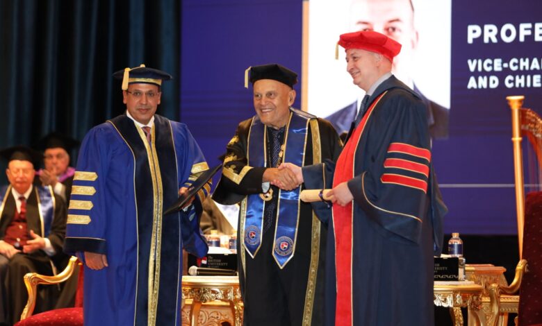 الجامعة البريطانية فى مصر تمنح الدكتوراة الفخرية لرئيس جامعة لندن ساوث بانك وتكرم الطلاب الأوائل
