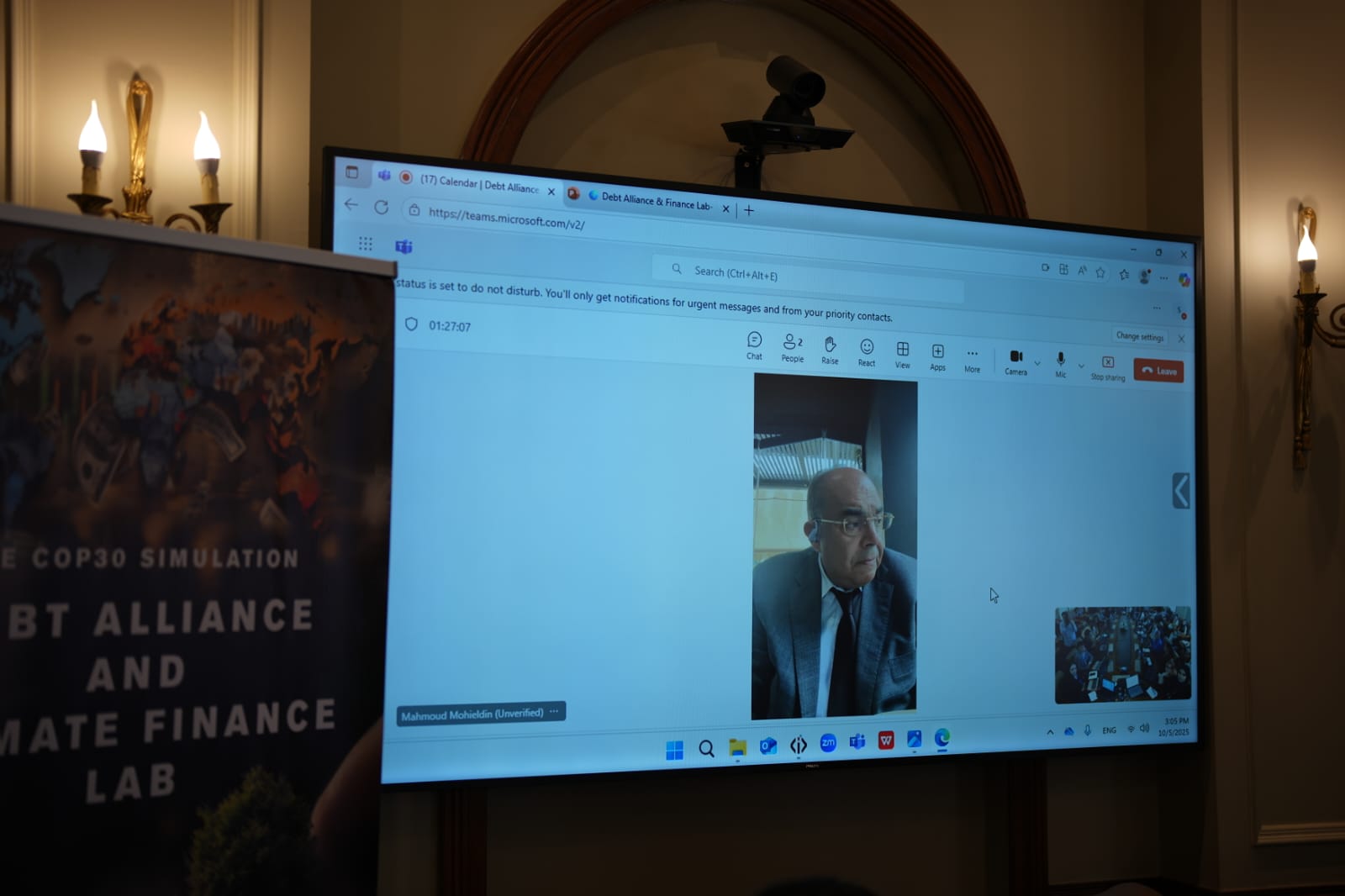 وترأس الجلسة الأستاذ الدكتور محمود محيي الدين، المبعوث الخاص للأمم المتحدة لتمويل أجندة التنمية المستدامة 2030، والرئيس المشارك لفريق الخبراء رفيع المستوى المكلَّف من الأمين العام للأمم المتحدة بتقديم حلول للتعامل مع أزمة الديون، والرئيس الشرفي لبرنامج محاكاة قمة المناخ.