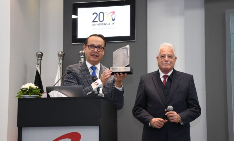شهدت الجامعة الألمانية في القاهرة، مراسم حفل تكريم اللواء خالد فودة محافظ جنوب سيناء للجامعة نظير المجهود المبذول من جانب فريق عمل مركز هوية مصر لتطبيق مفردات الهوية البصرية بمدن محافظة جنوب سيناء ( شرم الشيخ – نويبع – دهب – سانت كاترين – طابا – الطور ) والمشاركة الفاعلة بالمشروعات التى أقيمت بمدينة شرم الشيخ تحضيراً لمؤتمر المناخ والتى كان لها بالغ الأثر فى النجاح العالمى لمؤتمر قمة المناخ COP27.
