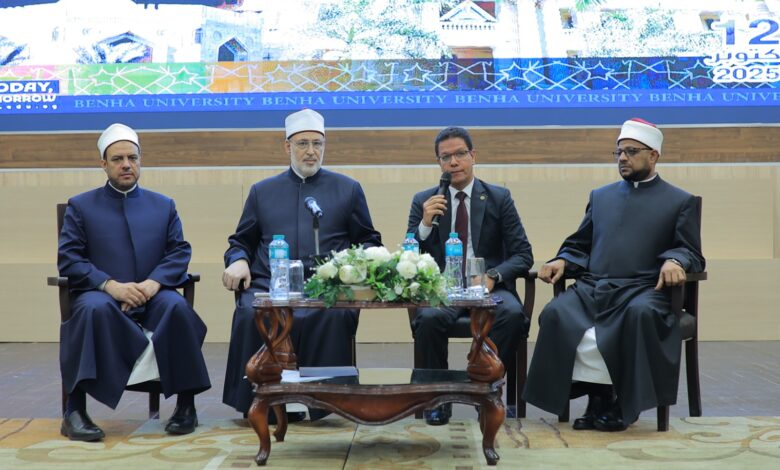 وفي كلمته قال الدكتور ناصر الجيزاوي أن تنظيم جامعة بنها لندوة بعنوان “الإيمان أولاً” فأننا نضع حجر الأساس لكل بناء إنساني، روحي، ووطني ،فالإيمان هو النور الذي يضيء لنا طريق الحياة، وهو القوة التي تدفع الإنسان نحو الخير، وتمنحه الثبات في وجه المحن، والطمأنينة في قلب العواصف ، والإيمان بالله هو الركيزة الأولى في حياة المؤمن، وهو التصديق الجازم بوجود الله، وبصفاته، وبما جاء به رسله قال تعالى: “آمن الرسول بما أنزل إليه من ربه والمؤمنون” ، ويتجلى الإيمان في العمل الصالح، في الصدق، في الأمانة، وفي الرحمة ، فليس الإيمان مجرد كلمات تُقال، بل هو سلوك يُعاش ، فالإيمان يمنح الإنسان راحة نفسية، ويجعله متصالحًا مع ذاته ومع الكون من حوله، لأنه يعلم أن كل شيء بقدر، وأن الله لا يضيع أجر المحسنين.