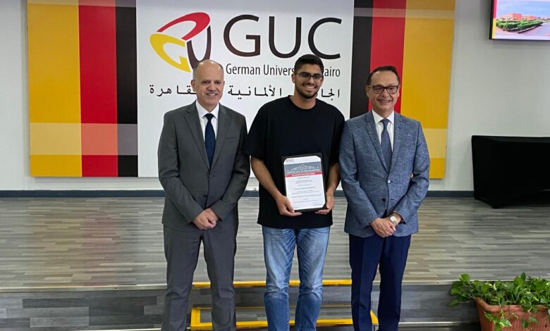 الدكتور أشرف منصور رئيس أمناء الألمانية بالقاهرة يسلم 58 منحة تميز أكاديمي ورياضي لطلابها