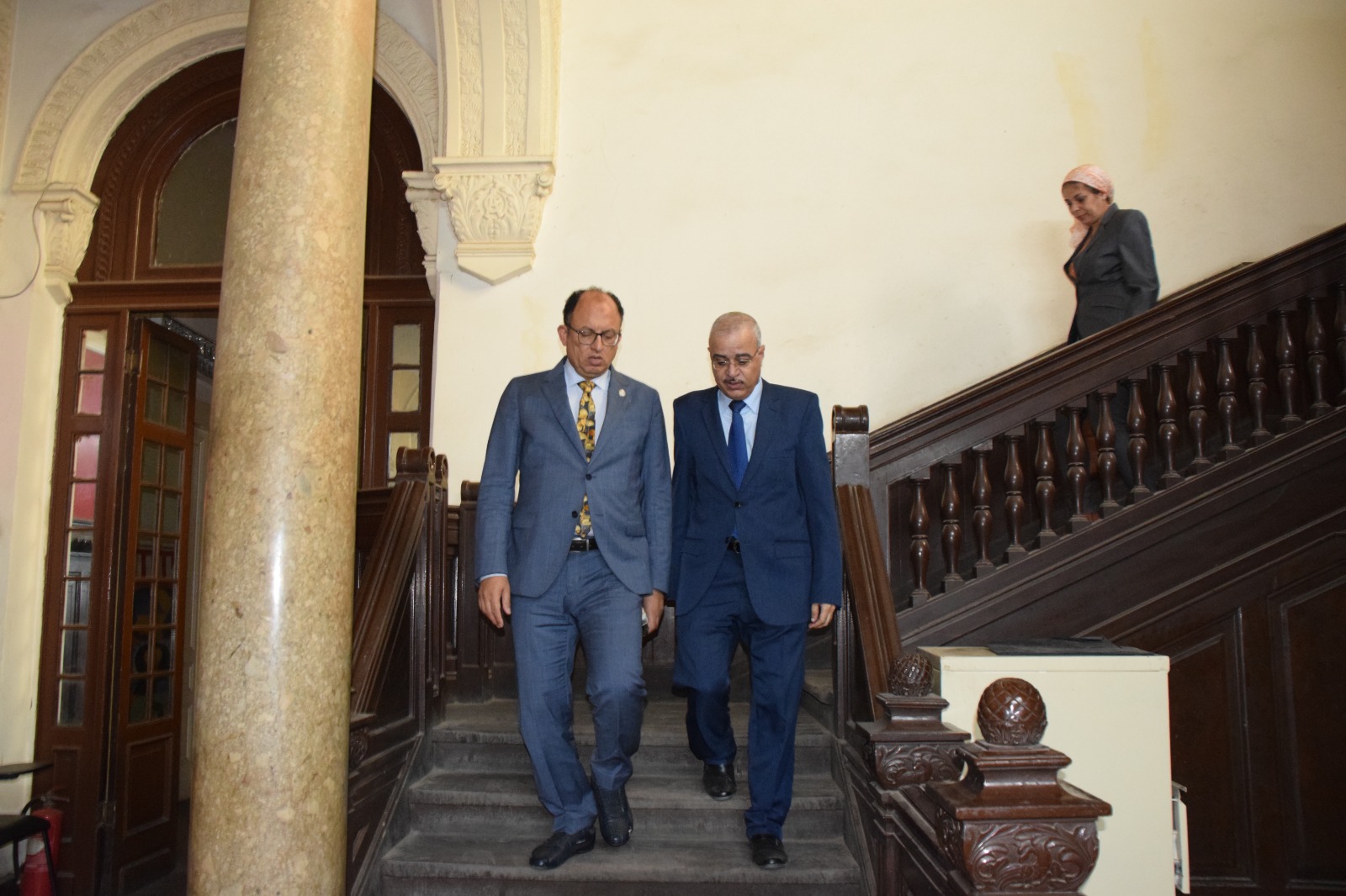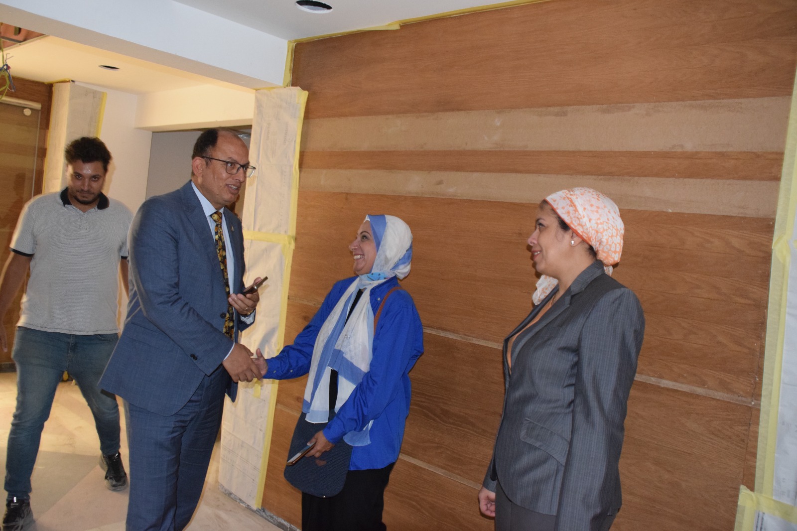 الدكتور السيد قنديل يتفقد مقر الجامعة بالمهندسين ومعهد الملكية الفكرية وكليتى السياحة والفنادق والتربية الرياضية بنات