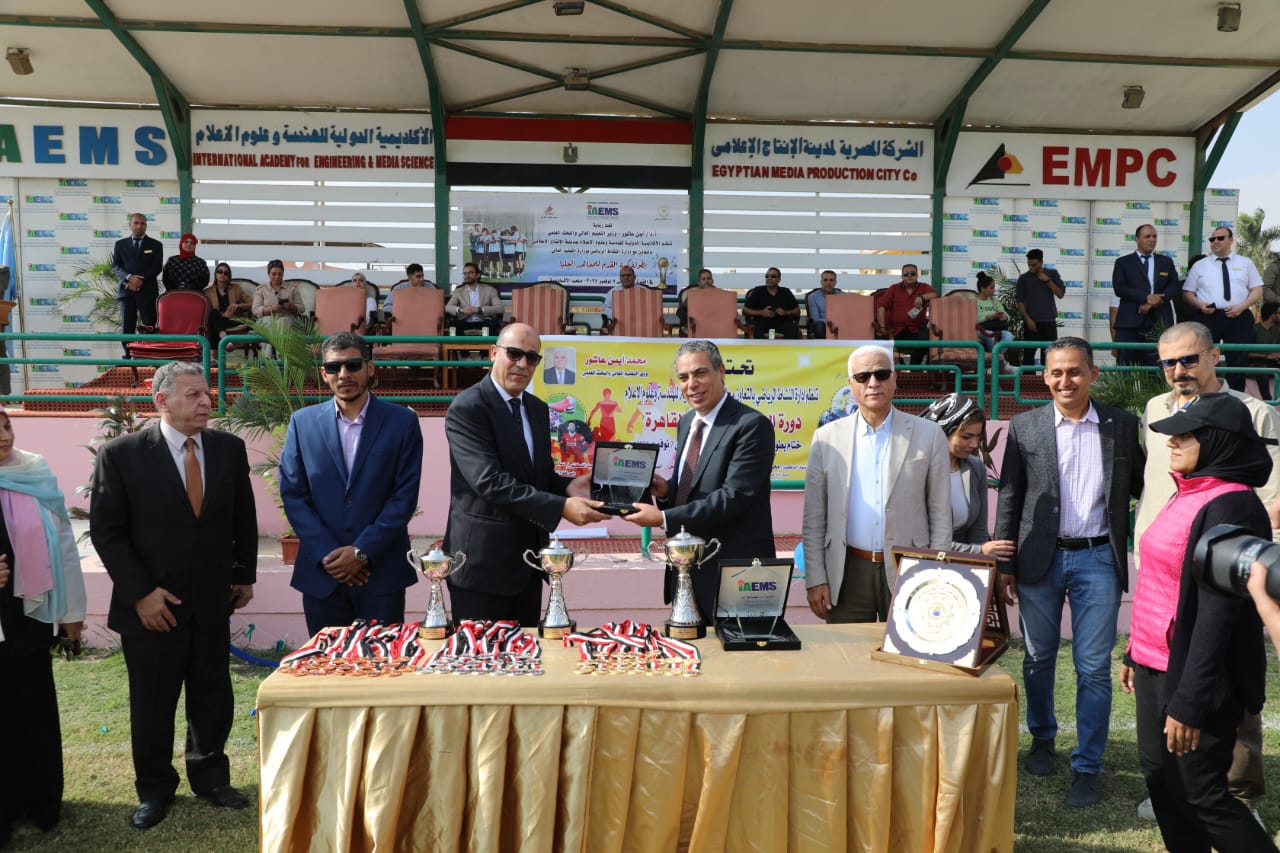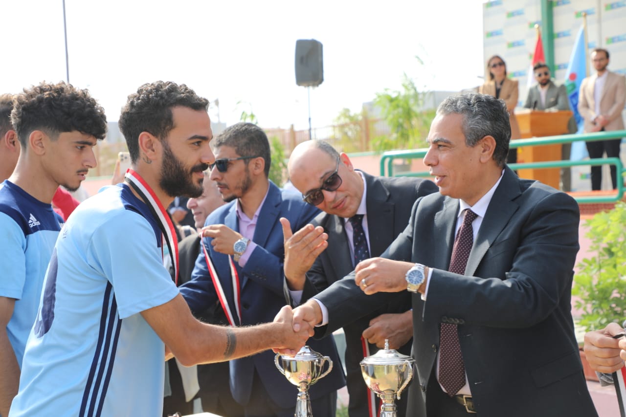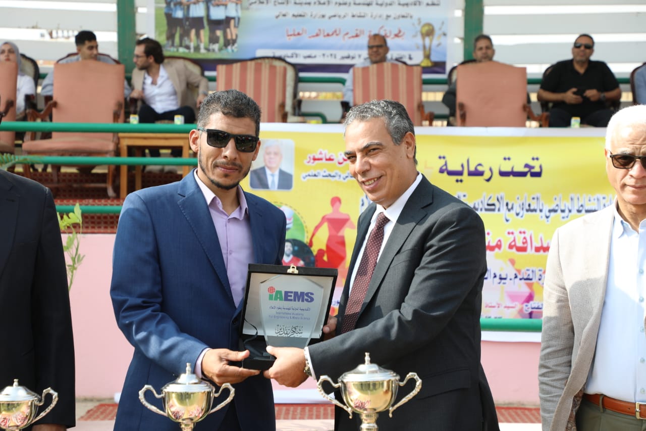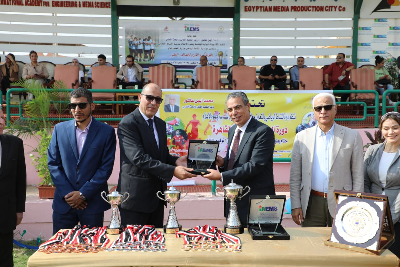 الدكتور عادل عبد الغفارعميد الأكاديمية الدولية للهندسة وعلوم الإعلام يشهد ختام بطولة وزارة التعليم العالي للمعاهد العليا لكرة القدم