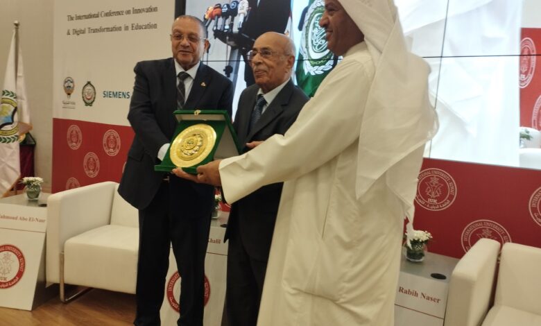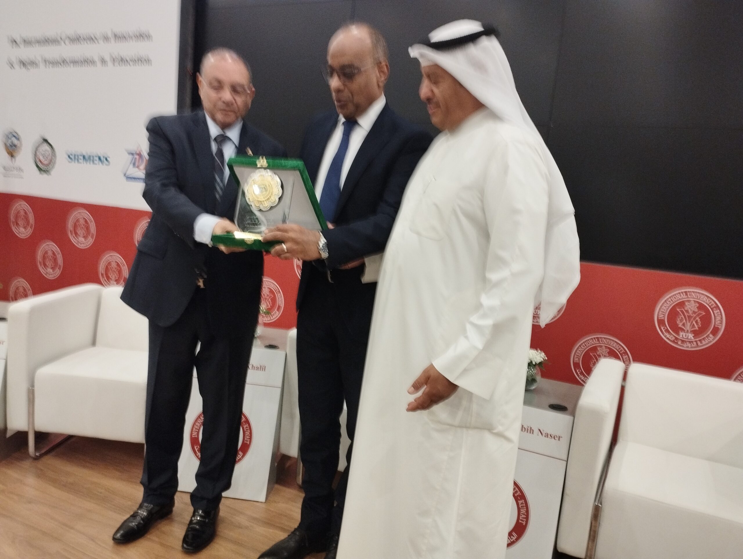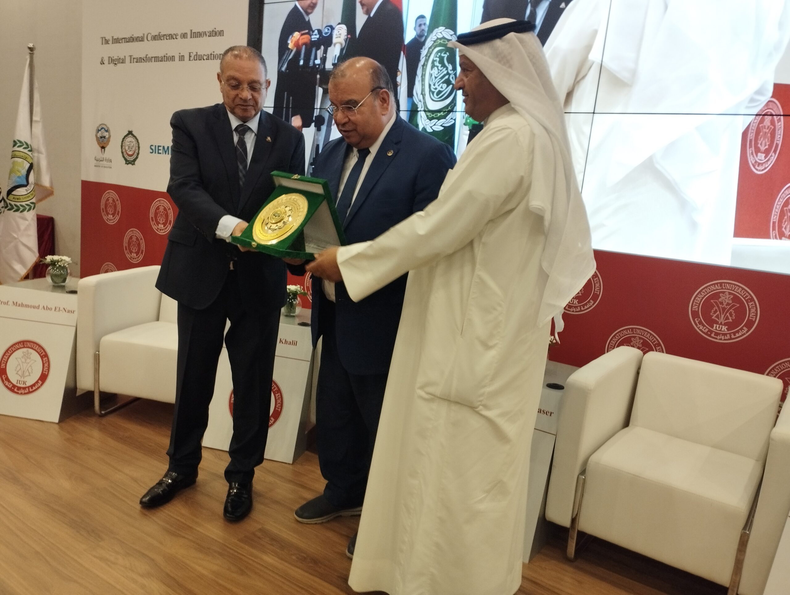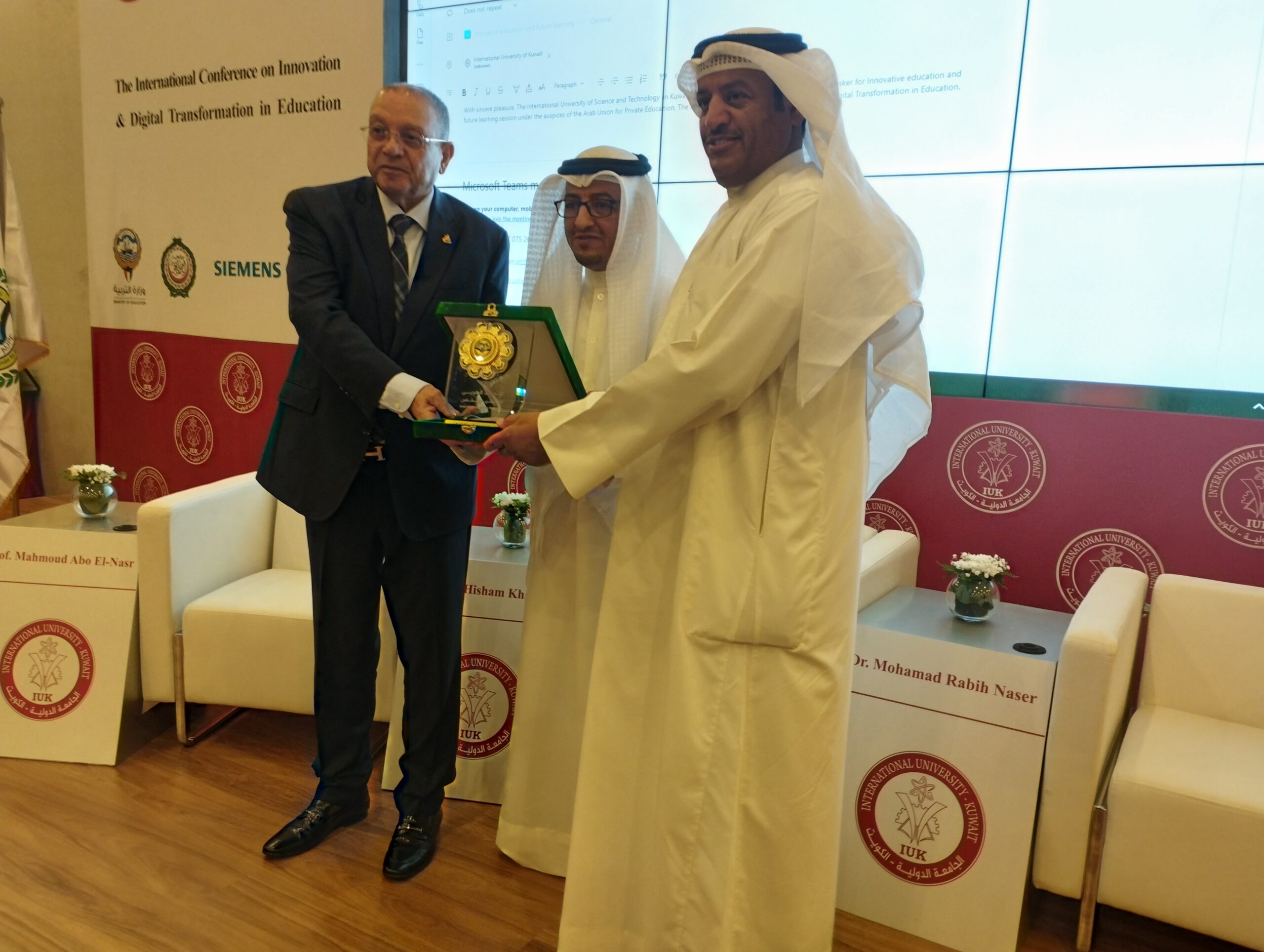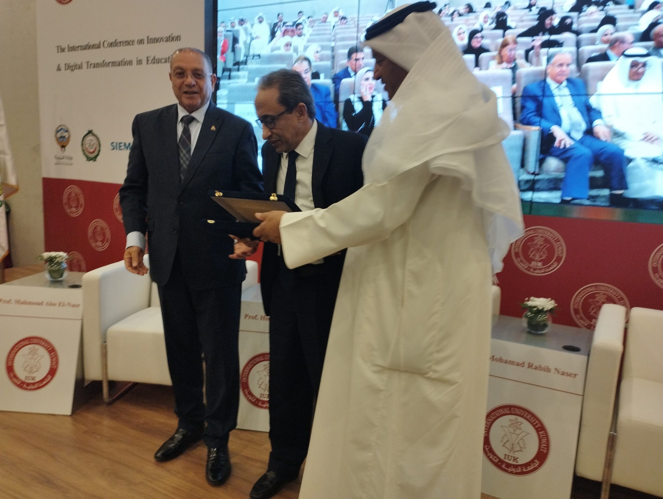 شهد المؤتمر الدولى للابداع والتحول الرقمى فى مجال التعليم والذى عقد بالجامعه الدوليه بالكويت وافتتحت الدكتور محمد ربيع رئيس الاتحاد العربى للجامعات والدكتور ابراكات التعديلات رئيس مجلس أمناء الجامعه الدوليه بالكويت تكريم عدد كبير من الوزراء والسفراء والمسئولين تقديرا لدورهم الكبير فى مجال التعليم .سلم الدكتور محمد ربيع رئيس الاتحاد العربى والدكتور بكر الهديبان دروع التكريم المكرمين .شمل التكريم الدكتور مفيد شهاب وزير التعليم العالى الأسبق والدكتور عمرو عزت سلامه وزير التعليم العالى الأسبق والدكتور محمود ابو النصر وزير التربية والتعليم الأسبق والسفير محمد احمد ابنى رئيس الأمين العام لمجلس الوحدة الاقتصادية والدكتور فراج العجمى الوزير المفوض بالأمانة العامة لجامعة الدول العربية والدكتور هشام خليل عميد كلية الطب ونائب رئيس الجامعه للعلاقات الدولية والدكتور اكرم حسن نائب وزير التربية والتعليم والاستاذ رفعت فياض مدير تحرير اخبار اليوم