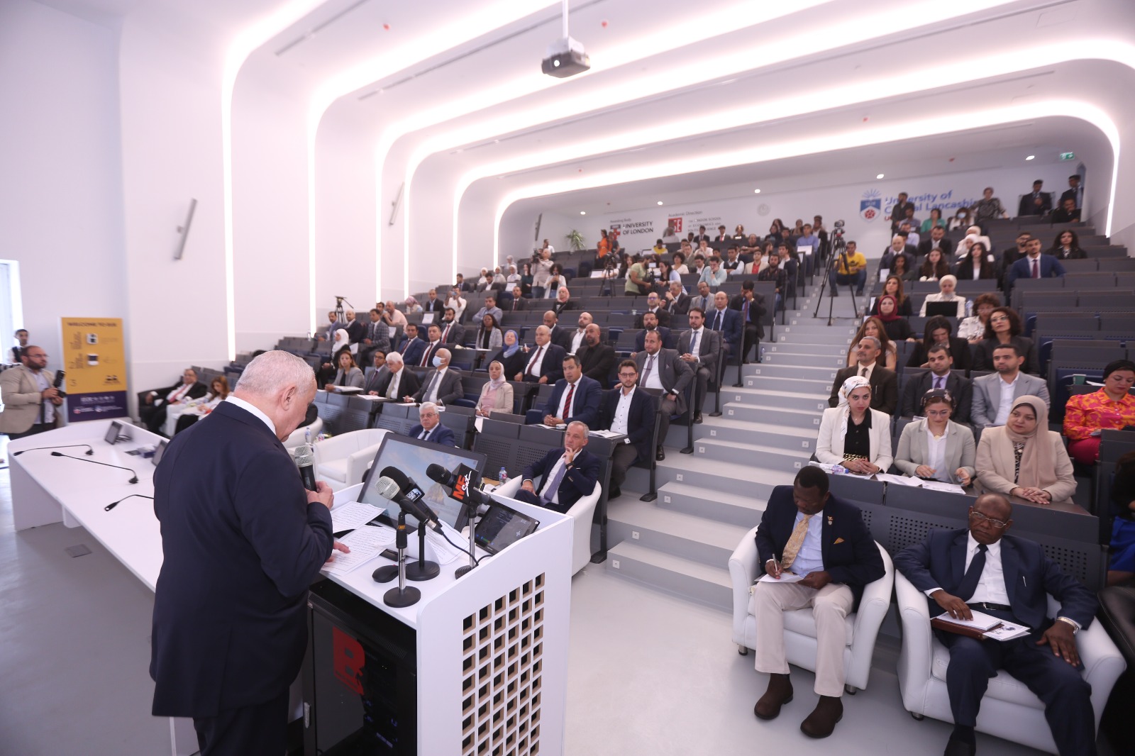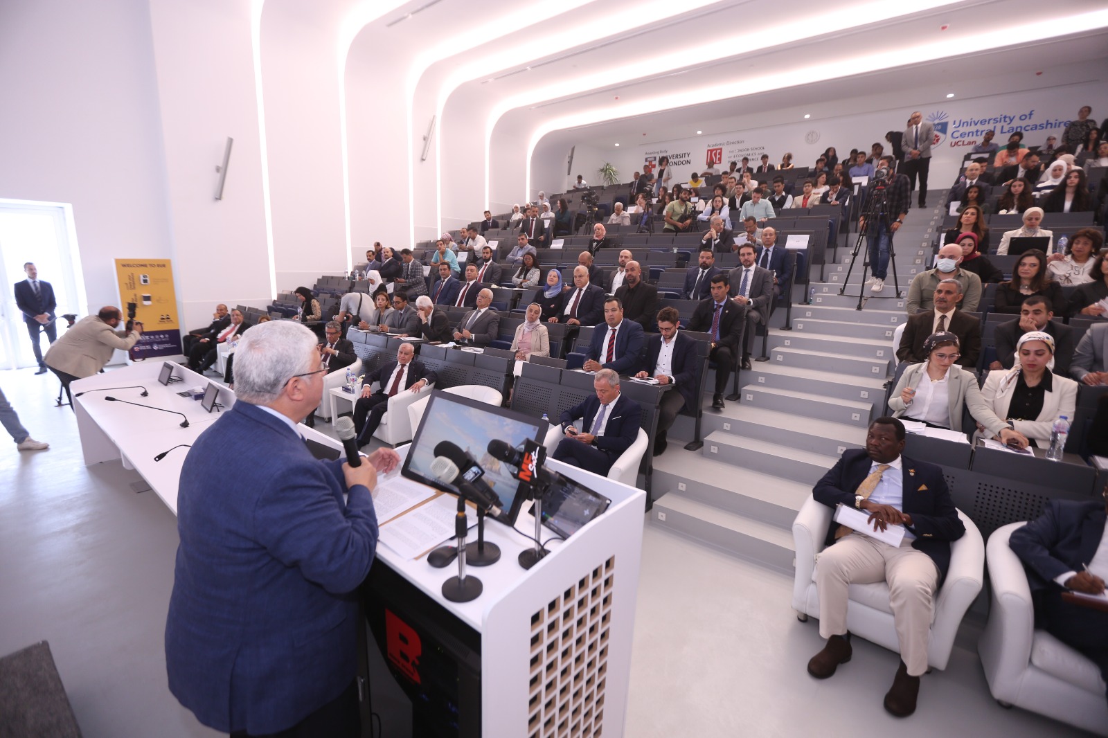 واوضح ان الإمكانيات في إفريقيا لا تعرف حدودًا حيث تمتلك الدول الإفريقية ممثلة في أبناء هذه القارة كمية هائلة من المواهب والإبتكارات وروح الصمود.واكد إن الجامعات الأوروبية في مصر تحمل مسؤولية كبيرة تجاه تعزيز التواصل والتبادل الثقافي بين الطلاب من جنسيات مختلفة ، عن طريق استضافة مؤسسات تعليمية عالمية مرموقة مثل كلية لندن للاقتصاد والعلوم السياسية LSE – بجامعة لندن، وهى جامعة فيدرالية حيث تم إنشاؤها منذ عام، وتخرج منها 84 عالما حصلوا على جائزة نوبل وتخرج منها عدد 37 رئيس دولة ورئيس وزراء ، وغيرها من الكليات المختلفة مثل كلية لندن الجامعية UCL و المصنفة رقم 8 على العالم و غيرها، وفرع جامعة وسط لانكشاير والتي تتميز بعراقتها حيث تم إنشاؤها منذ عام 1828 والتى يُنظر إليها على أنها إحدى الجامعات البريطانية الرائدة في مجال الشراكات الدولية، وارتباطها بالصناعة. والتى تمنح درجات البكالورويوس في العلوم الهندسية في تخصصات فريدة ومميزة ، كما سيتم إنشاء مجمع حاضنات التكنولوجيا ومركز الإبداع والإبتكار فى الجامعات الأوروبية في مصر بالعاصمة الإدارية الجديدة. وقدم الدكتور هاشم تلخيص لما يمكن أن يقوم به فرعي جامعة لندن وجامعة وسط لانكشاير ويتضمن اتاخة الجامعة للطلاب فرصة للاستفادة من 32 برنامجا دراسيا لمرحلة البكالوريوس والدراسات العليا وتجارب تعليمية متميزة تمتاز بالمعايير الدولية وأعلى تصنيف عالمي في مصر بإنجاز غير مسبوق.