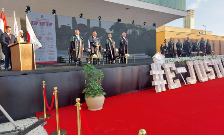 نظمت الجامعة المصرية اليابانية للعلوم والتكنولوجيا اول حفل تخرج للطلاب للدفعات من ٢٠١٩ وحتى ٢٠٢٤ لطلاب الدراسات العليا ، والدفعات من ٢٠٢١ الى ٢٠٢٤ لطلاب البكالوريوس بكليات الهندسة وادارة الاعمال الدولية والانسانيات وذلك بحضور الدكتور هانى هلال وزير التعليم العالى والبحث العلمى الأسبق ورئيس مجلس أمناء الجامعة والدكتور عمرو عدلى رئيس الجامعة ونواب رئيس الجامعة و السفير أوكا هيروشي سفير اليابان بالقاهرة وعدد من سفراء الدول الافريقية بالقاهرة ومسئولى مكتب الجايكا وبحضور لفيف من رؤساء الجامعات ونواب البرلمان بلجنة التعليم والبحث العلمى وقيادات من الهيئة الهندسية للقوات المسلحة وقيادات تنفيذية بمحافظة الاسكندرية وعدد كبير من أولياء أمور الطلاب وذلك بمقر الجامعة بمدينة برج العرب الجديدة .