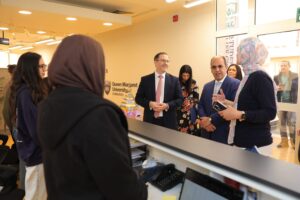 كما تضمنت الجولة زيارة مبنى خدمات الطلاب بالجامعة، الذي يعد الأول من نوعه في الجامعات المصرية، حيث يجمع مختلف الخدمات الطلابية في مكان واحد بشكل متكامل ومميكن، بما يسهم في تسهيل الإجراءات وتقديم تجربة تعليمية وخدمية متطورة للطلاب.