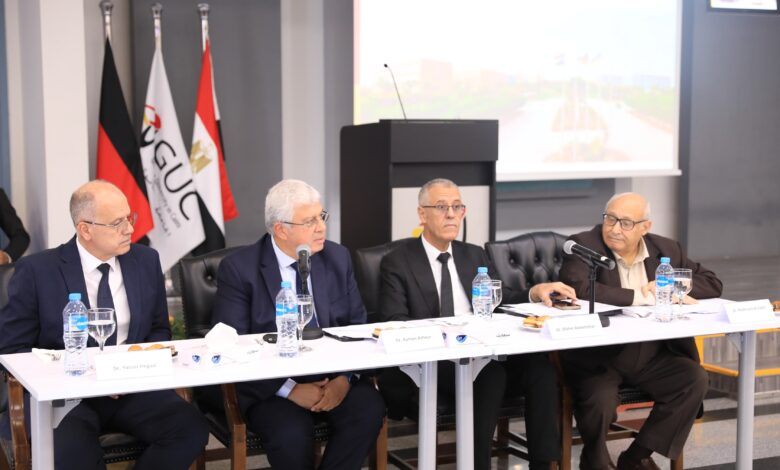 قدم الوزير الشكر لكل من د.أشرف منصور رئيس مجلس أمناء الجامعة الألمانية بالقاهرة ود.ياسر حجازي رئيس الجامعة على استضافة الاجتماع المشترك لمجلسي الجامعات الخاصة والأهلية.