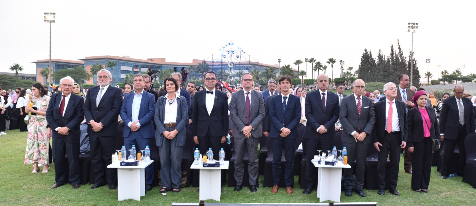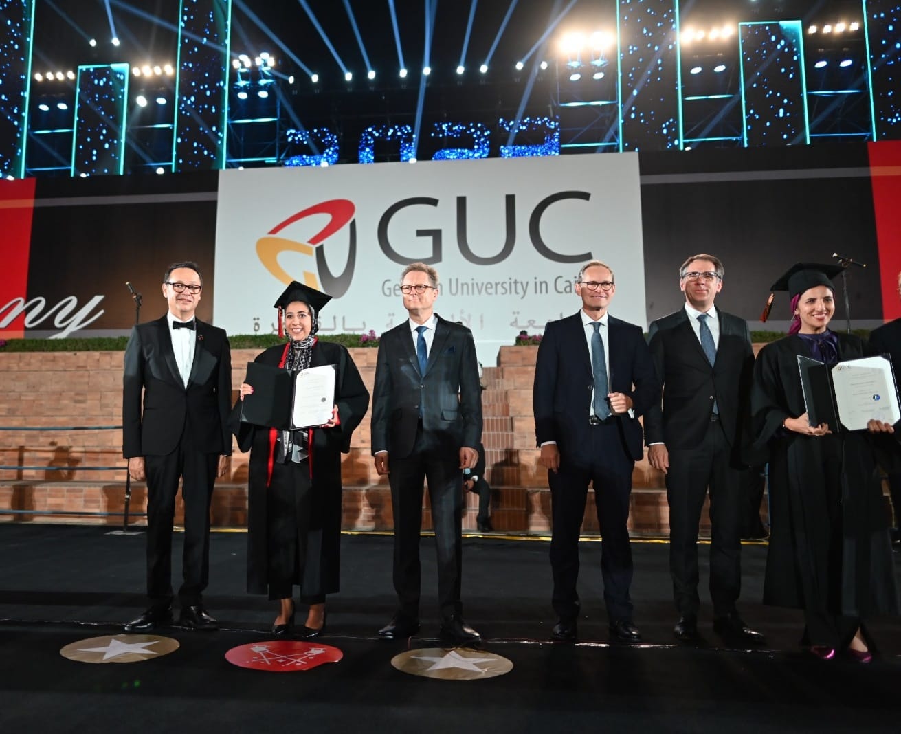 بمشاركة وفد المانى رفيع المستوى يضم شخصيات بارزة ممثلين للعديد من المؤسسات و الهيئات الإقتصادية و السياسية و العلمية وبحضور العديد من قامات المجتمع المصري ، شهد حرم الجامعة الالمانية بالقاهرة بمقرها بالتجمع الخامس خلال شهر اكتوبر الحالي ختام حفلات التخرج الطلابى للعام الدراسى 2022-2023، التي أستمرت على مدار ثلاث ليال متتالية بتكريم 2408 خريج من كليات الجامعة الـسبع “7 “من الحاصلين على الدرجات العلمية البكالوريوس – الماجستير – الدكتوراة – الماجستير المهنى في إدارة الأعمال MBA