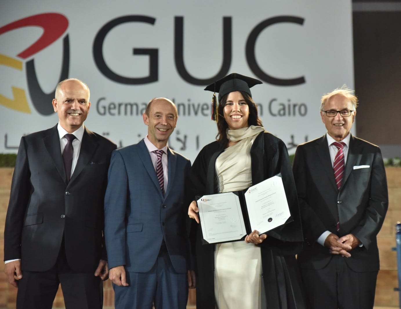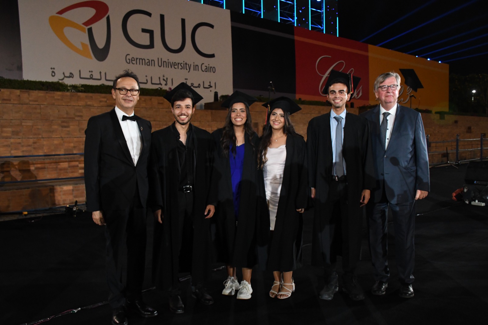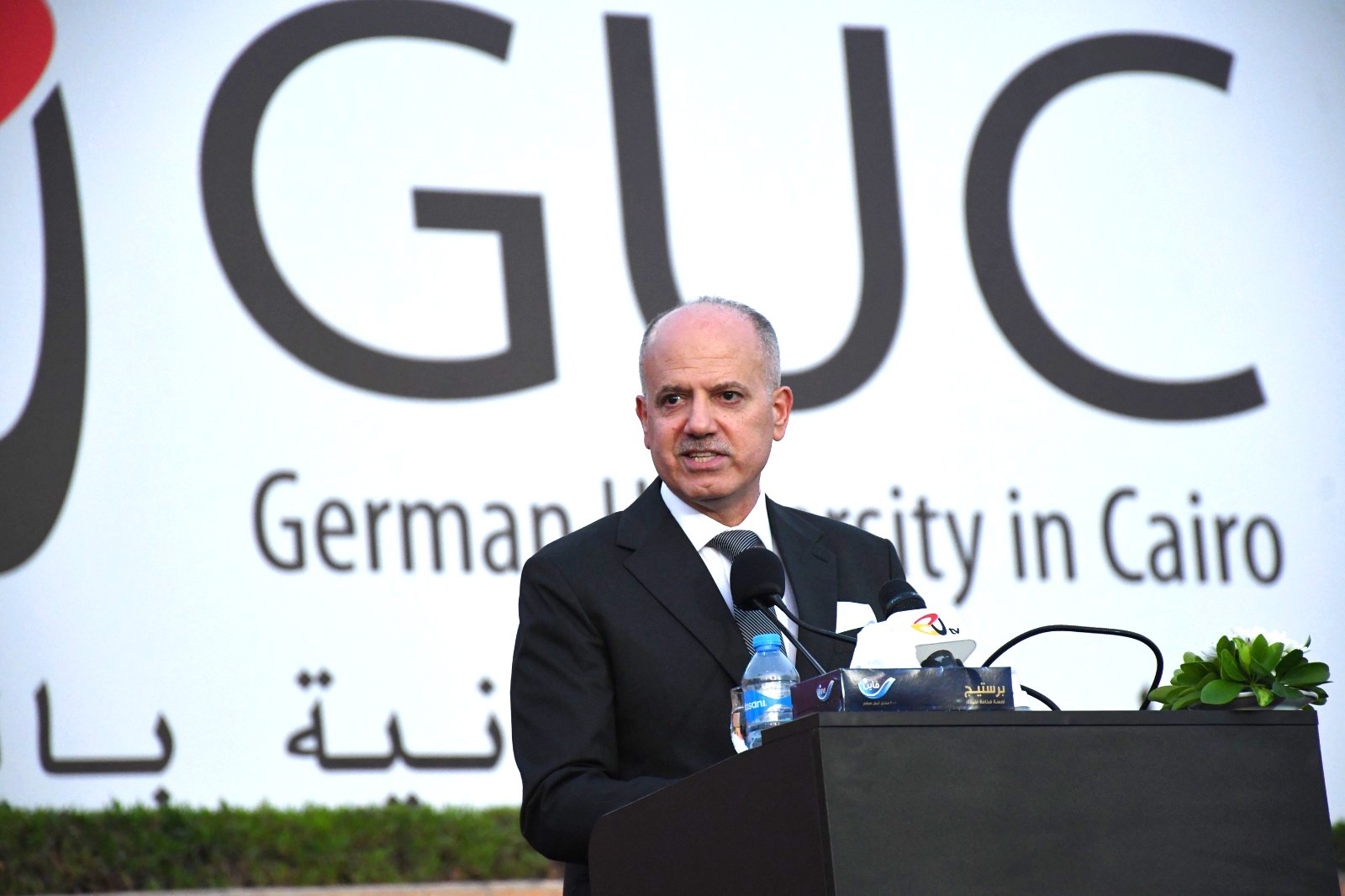 أستهل الدكتور أشرف منصور رئيس مجلس امناء الجامعة الالمانية بالقاهرة، كلمته فى هذه المناسبة بالإعراب عن فخره و سعادته بتقديم دفعات جديدة من خريجيها لسوق العمل المحلي والعالمي ، وذلك بحضور و مشاركة السيد فرانك هارتمان، سفير دولة ألمانيا الإتحادية في مصر ، السيد مايكل مولر، عضو البوندستاج الألماني ، السيد ويلي شتيشلى، عضو البرلمان ورئيس اللجنة البرلمانية لأوروبا والشؤون الدولية ، السيدة سابينا هارتمان مولر، عضو برلمان ولاية بادن فورتمبيرج رئيسة لجنة العمل الأوروبية والدولية لحزب ال CDU ، المهندس دانيال ساندر، المدير العام للمجلس الاقتصادي بولاية بادن فورتمبيرج ، السادة أعضاء منتدى دولنبرج ، الدكتور كاى زيكس، السكرتير العام للهيئة الألمانية للتبادل العلمى DAAD، السيد جوليان أوزوالد عمدة فرويدنشتات ، الدكتور ميشائيل فيبر، رئيس جامعة أولم وعضو مجلس أمناء الجامعة الالمانية ، الدكتور ديتر فريتش رئيس جامعة شتوتجارت السابق ونائب رئيس مجلس الأمناء للشؤون الاكاديمية ، الاستاذ الدكتور ابراهيم خلف الدميري عضو مجلس الأمناء بالجامعة الالمانية ، الدكتورة منال عوض محافظ دمياط ، الأستاذ كرم جبر رئيس المجلس الأعلى لتنظيم الإعلام ، الأستاذ أياد ابو الحجاج رئيس مجلس إدارة جريدة الجمهورية ، الأستاذ علاء ثابت رئيس تحرير جريدة الأهرام ، الأستاذ عماد الدين حسين رئيس تحرير جريدة الشروق ، الدكتور ياسر حجازى رئيس الجامعة الألمانية ، السفير عمر سليم مساعد وزير الخارجية لشئون العلاقات العلمية و الثقافية بوزارة الخارجية ، بجانب تواجد عدد من رؤساء المؤسسات العلمية والثقافية في مصر وألمانيا، و رؤساء جامعات المانية ومصرية ، وعدد من الصحفيين و الاعلامين و رؤساء مجالس إدارات الشركات ورجال الصناعة الالمانية والبنوك و أعضاء هيئة التدريس الجامعة الألمانية.