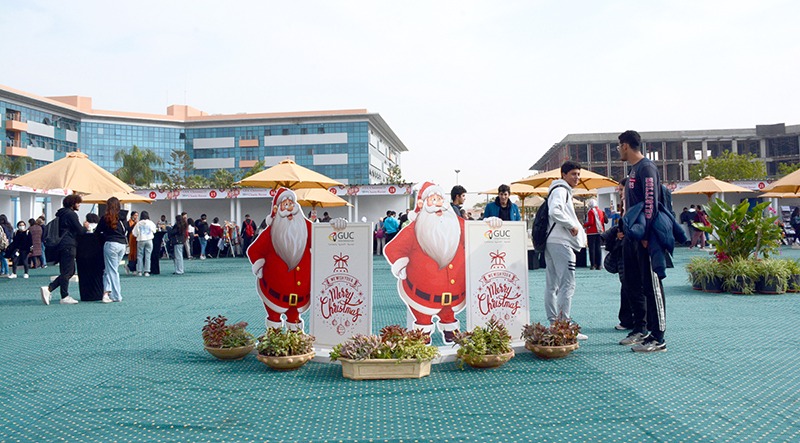 مع بداية العد التنازلي للاحتفال بأعياد الكريسماس الذي يصادف الخامس والعشرين من شهر ديسمبر من كل عام و قرب حلول عيد الميلاد الجديد ، افُتتح بحرم الجامعة الألمانية بالقاهرة البازار السنوى للكريسماس الذي يشمل مجموعة واسعة من المعروضات و المنتجات الخاصة بهذه المناسبة ،من مستلزمات زينة الميلاد المجيد من صور وخلفيات سانتا كلوز ،و ديكورات الحائط ، شجرة الميلاد وزينتها من البالونات والكرات الذهبية ، مستلزمات الإضاءة المبهرة التي تعلق بها ، إضافة إلى معروضات خشبية ملونة ، الشموع ، العطور ، الأكسسوارات و الحلى الفضية ، الملابس ، مستحضرات التجميل و العناية بالبشرة ، المفروشات المنزلية من الكروشيه والتريكو ، أدوات المائدة ، نباتات الزينة والزهور ، منتجات التعبئة والتغليف إضافة إلى العديد من الاطعمة الحلوة والمملحة والمشروبات .