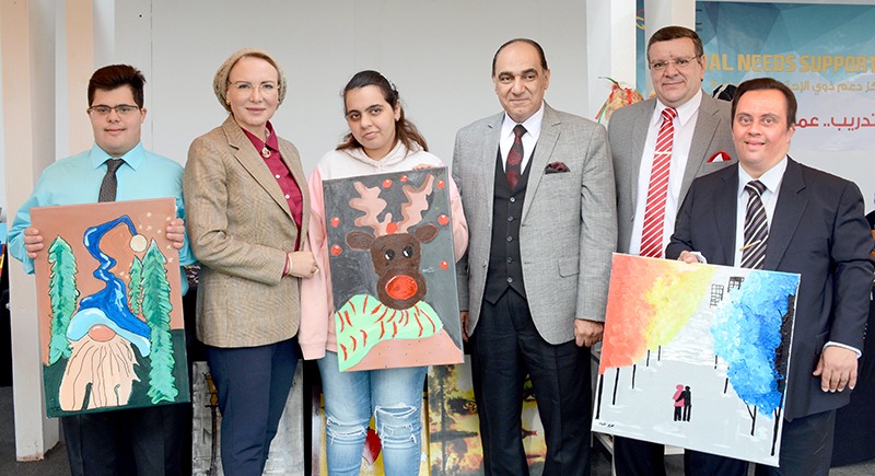 وقد حرصت الجامعة على تخصيص جناحًا خاصاً لعرض المنتجات التي تم إنتاجها بأيدي شباب مركز دعم المجتمع لذوى الاحتياجات الخاصة بها ويشمل مشغولات فنية – منتجات غذائية و خشبية – أعمال كروشية – أشغال يدوية – سجاد وكليم – حلى- اكسسوارات – خزف – بامبو – زجاج – فخار – مفروشات ومنتجات التطريز على القماش .