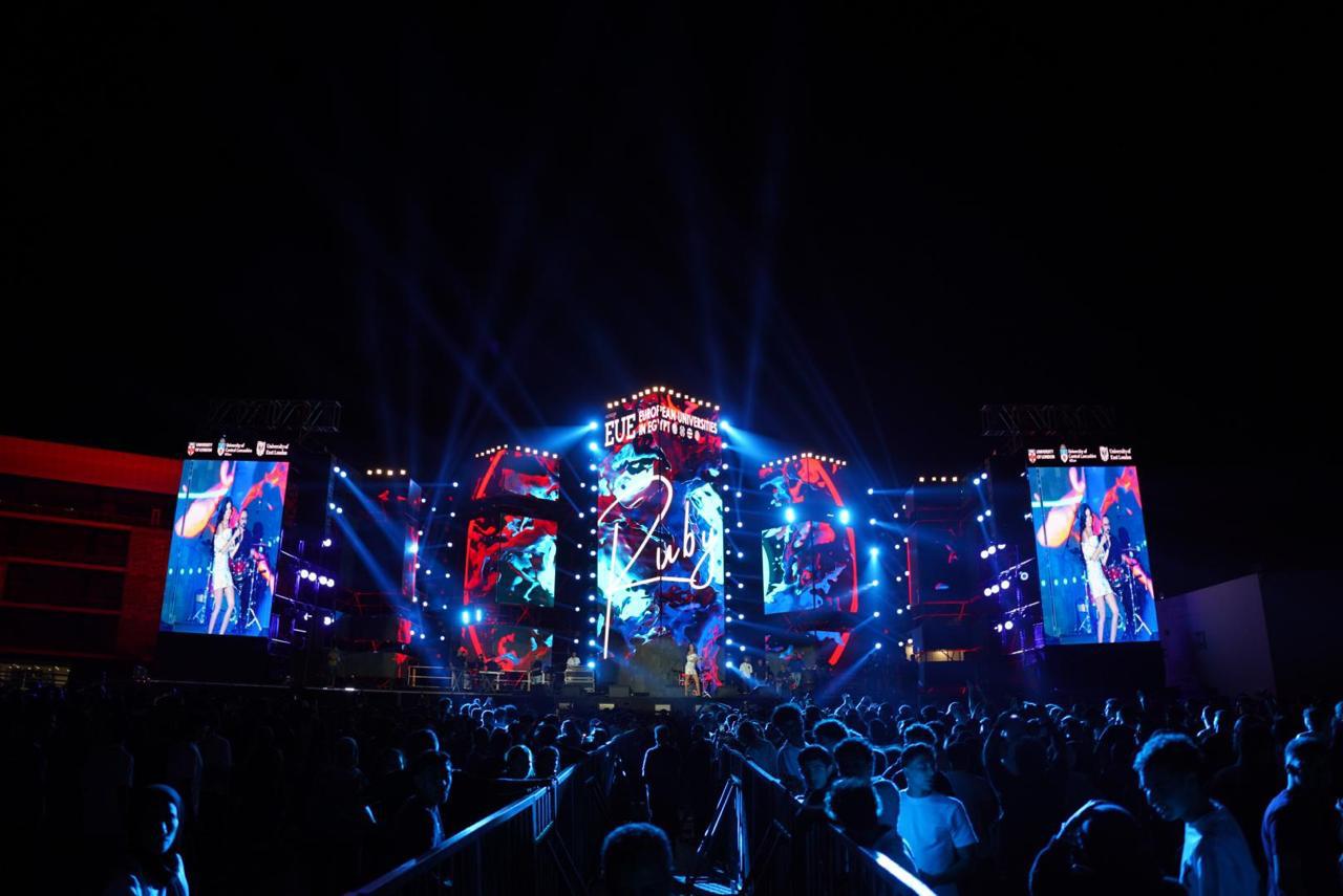 تميز الحفل بتفاعل جماهيري لافت، حيث أدت الفنانة روبي مجموعة من أشهر أغانيها مثل “حتة تانية” و”قلب بلاستيك”، إلى جانب باقة من الأغاني التي لاقت استحسانًا واسعًا من الحضور. وقد عكست الأجواء الحماسية والإبهار البصري على المسرح طاقة الشباب وحيويتهم، بينما أضاف كل من الرابر “تومي جان” والفنان “حسين” عروضًا موسيقية شبابية عصرية لاقت تفاعلًا كبيرًا من الطلاب.