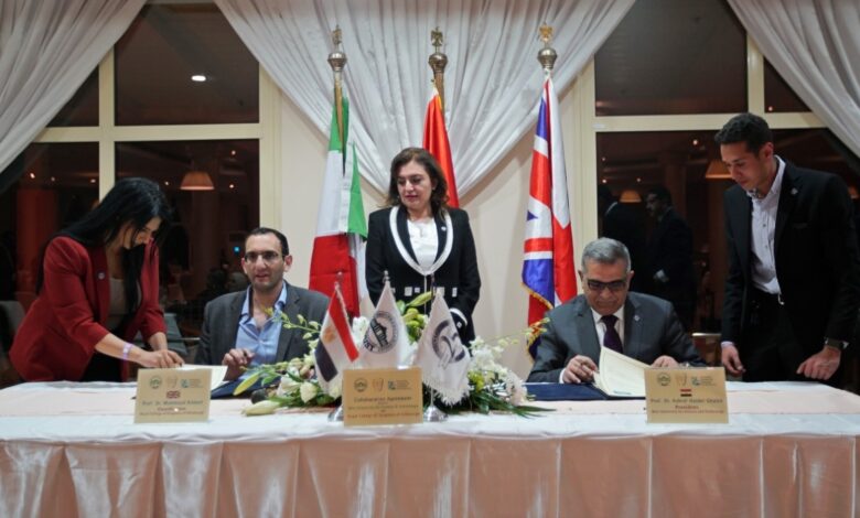 وأضافت د. هالة المنوفي أنه تم توقيع بروتوكول تعاون مع منسق الكلية الملكية البريطانية وذلك لاعتماد برنامج الزمالة البريطانية في كلية طب الاسنان جامعة مصر للعلوم والتكنولوجيا على ان يكون تحت إشراف جميعة الجراحين الملكية، ووقع عن جامعة مصر الدكتور أشرف حيدر رئيس جامعة مصر للعلوم والتكنولوجيا، وبروتوكول آخر خاص ببدء الدراسة في برنامج ماجستير تطبيق الليزر والخاص بجامعة جنوا الايطالية ليدرس لأول مرة خارج الجامعة وداخل رحاب جامعة مصر للعلوم والتكنولوجيا وقام بتوقيع البروتكول عميد كلية طب جراحة الفم والاسنان جامعة مصر للعلوم والتكنولوجيا، وعميد معهد تطبيقات الليزر بجامعة جنوا الايطالية، وأعلنت عميد الكلية أن رئاسة المؤتمر الشرفية كانت لكل من الدكتور أشرف حيدر رئيس جامعة مصر للعلوم والتكنولوجيا، والدكتور طارق صلاح الدين رئيس لجنة قطاع طب الأسنان، والدكتور ستيفانو بن دشنتي عميد معهد تطبيقات الليزر بجامعة جنوا الإيطالية.