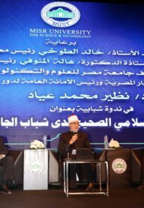 بالصور.. جامعة مصر للعلوم والتكنولوجيا تنظم ندوة “عودة الوعي الإسلامي الرشيد لشباب الجامعات” بحضور مفتي الجمهورية