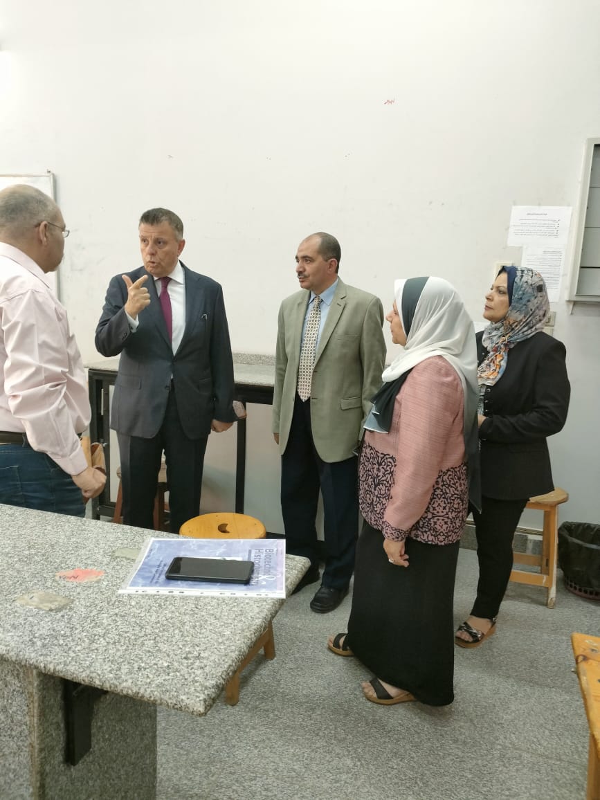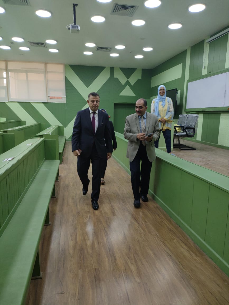 ثم أجرى أ.د. محمود المتيني جولة لتفقد آخر ما تم تنفيذه من أعمال تطوير المبنى القديم للكلية، وكذا قاعات التدريس ومعامل الأبحاث و مبنى النانو تكنولوجي.