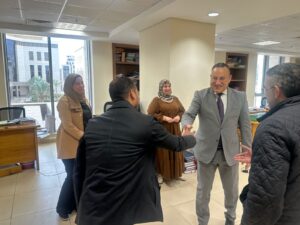 وخلال جولته التقى الوزير بعدد من قيادات الوزارة ومديري الإدارات والموظفين والعاملين، حيث قدم الوزير التهنئة الشخصية لكافة المتواجدين بمقر الوزارة بمناسبة حلول شهر رمضان المبارك، معربًا عن تقديره للجهود المبذولة، ومتمنيًا لهم دوام التوفيق.
