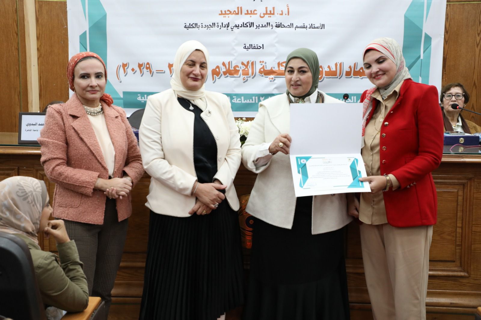 كما تم تكريم نخبة من خريجي الكلية، ومنهم: الكاتب الصحفي أ.أكرم القصاص، رئيس مجلس إدارة اليوم السابع، وأ. خالد الإتربي، رئيس القناة الفضائية المصرية، وأ. عبد العظيم صدقي، مستشار وزير الطيران سابقا، ود.أسامة السعيد، رئيس تحرير جريدة الأخبار، وأ. محمد طنطاوي، مدير تحرير اليوم السابع، لمشاركتهم الفاعلة في المقابلات مع خبراء الهيئة الألمانية للاعتماد الدولي، ودورهم المتميز في المشاركة بالعملية التعليمية داخل الكلية وخارجها من خلال المحاضرات وورش العمل، والندوات والمؤتمرات، وتحكيم مشروعات التخرج، وإتاحة الفرص التدريبية والزيارات الميدانية لطلبة الكلية في المؤسسات الإعلامية.
