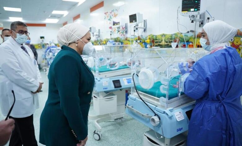 بالصور ..زيارة قرينة الرئيس لاطفال فلسطين بمستشفى العاصمة الاداريه