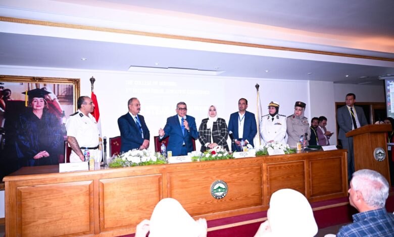 وأشارت العميدة إلى أنه تم إقامة ورش عمل على هامش المؤتمر منها سلامة المرضى بين المعايير الدولية والوطنية وتتمحور الورشة حول عرض الأهداف الدولية لسلامة المرضى وفقا لمعايير الهيئة الدولية لإعتماد جودة الرعاية الصحية (JCI) وعرض متطلبات السلامة الوطنية وفقا لمعايير الهيئة العامة للإعتماد والرقابة الصحية (GAHAR)، وتهدف الى التعرف على الفرق بين المعايير الدولية والوطنية وكيفية إعداد مؤشرات تقييم المعايير، لافتة إلى أن هناك ورشة أخرى تحت عنوان “مبادئ رعاية كبار السن” وتتمحور حول الرعاية الشاملة لكبار السن وتعزيز الرعاية البيولوجية والنفسية والاجتماعية لكبار السن وكيفية التعامل مع بعض المشاكل الشائعة لديهم، والتأهيل الحركى والنفسي وتطبيقات تقنيات الاسترخاء.