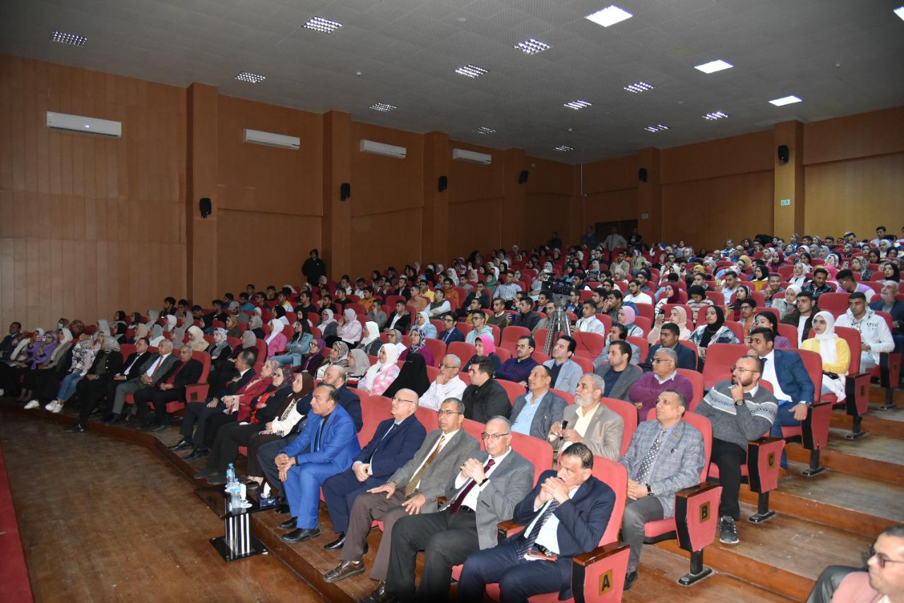 وبحضور عمداء ووكلاء الكليات وأعضاء هيئة التدريس والطلاب والطالبات بالجامعة.