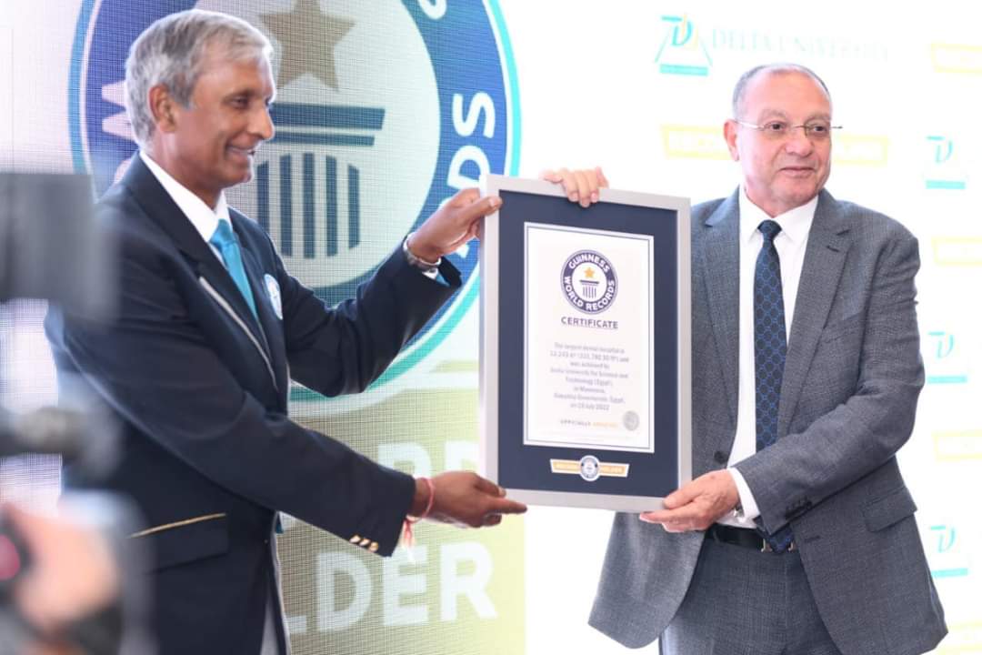 تحتفل جامعة الدلتا للعلوم والتكنولوجيا اليوم بحصولها على شهادة جديدة لمستشفى كلية طب الفم والأسنان التعليمي في موسوعة جينيس لعلاج اكبر عدد من المواطنين بالمجان