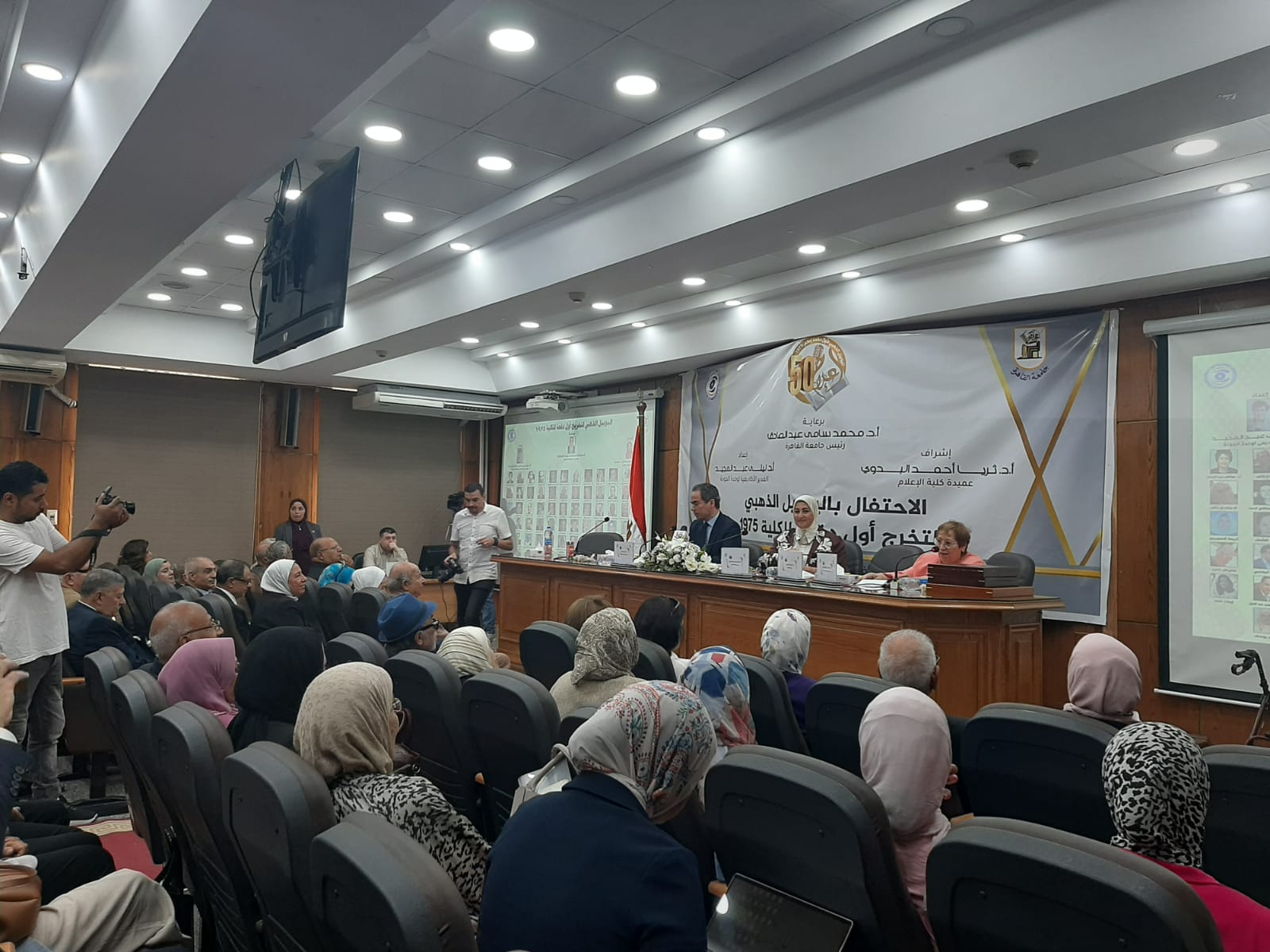 نظمت كلية الإعلام جامعة القاهرة، اليوم الأحد، احتفالية كبرى بمناسبة مرور خمسين عامًا على تخرج أول دفعاتها (1975- 2025)، وذلك برعاية الدكتور محمد سامي عبد الصادق رئيس الجامعة، والدكتورة ثريا أحمد البدوي عميدة الكلية، وإشراف الدكتورة ليلى عبد المجيد العميد الأسبق للكلية، وبحضور أحمد المسلماني رئيس الهيئة الوطنية للإعلام، إلى جانب نخبة من الشخصيات الإعلامية والأكاديمية.