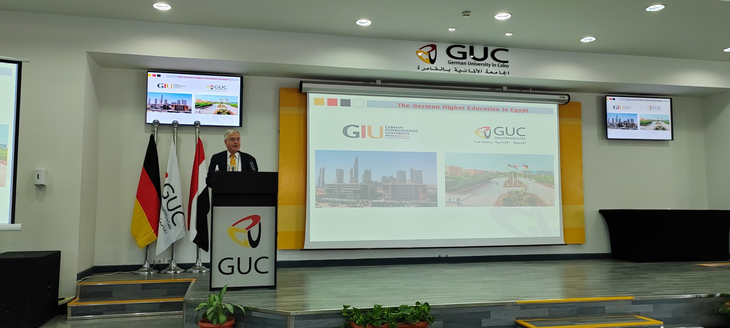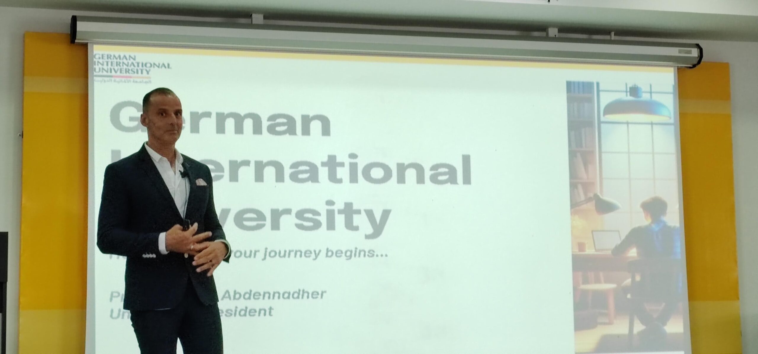 جاء ذلك في الاحتفالية المشتركة التي أقامتها الجامعة الألمانية بالقاهرة والجامعة الألمانية الدولية بالعاصمة الإدارية لأوائل الثانوية العامة بمختلف محافظات مصر بحضور الدكتور اشرف منصور رئيس مجلس أمناء الجامعة الألمانية بالقاهرة والرئيس المشارك لمجلس أمناء الجامعة الألمانية الدولية ، والسيد يوليوس جورج لوى رئيس مجلس أمناء الجامعة الألمانية الدولية ، والدكتور ياسر حجازى رئيس الجامعة الألمانية بالقاهرة ، والدكتور سليم عبد الناظر رئيس الجامعة الألمانية الدولية.