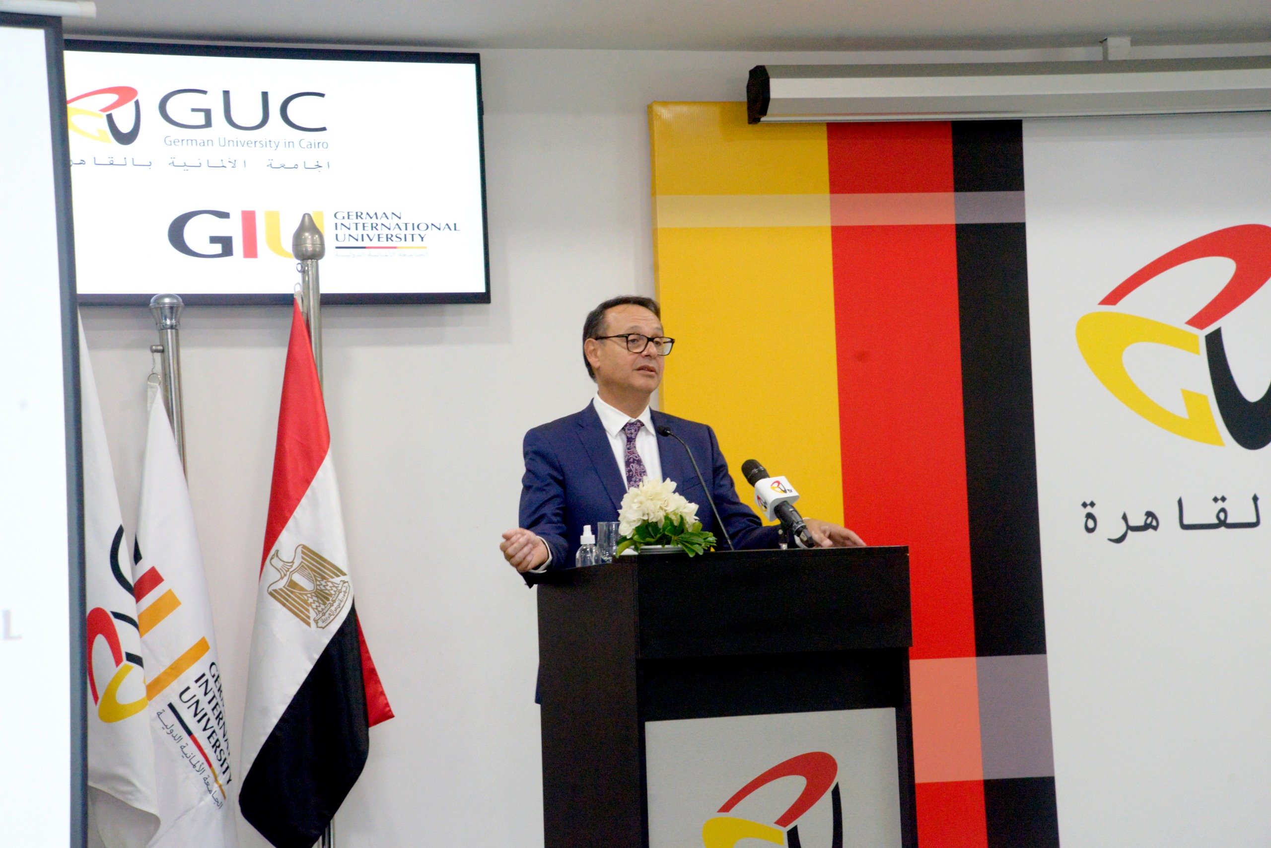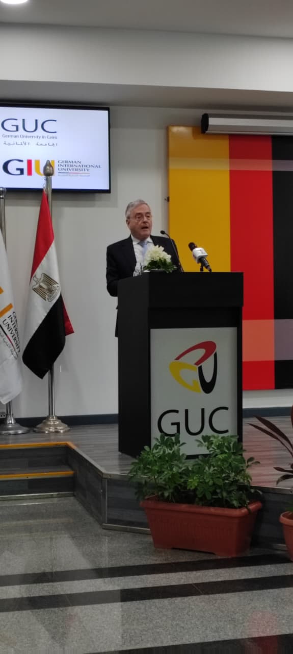 هذا وقد أكد السيد يوليوس جورج لوي رئيس مجلس أمناء الجامعة الألمانية الدولية بالعاصمة الإدارية الجديدة في كلمته إن الجامعتين الألمانية بالقاهرة و الألمانية الدولية لديهما ايمان راسخ بأن التفوق و الموهبة التي يصحبها العمل الجاد و الذكاء لابد من دعمها و الوقوف خلفها وهذا ينبع من مسؤوليتنا تجاه مصر، وبناء على ذلك يتم تخصيص منح لاثنين من الطلاب من كل محافظة من جميع أنحاء مصر لإتاحة التعليم العالي الألماني الذي يعطي فرصة للطلاب بأن يكونوا جزءا من تنمية محافظتهم وبالتالي تنمية الوطن.